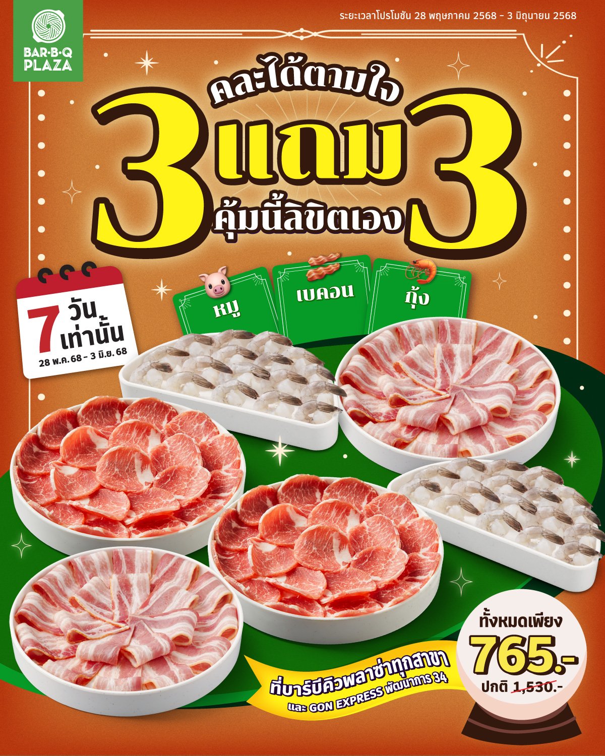 เช็ครายละเอียดโปรโมชันเพิ่มเติม : https://barbqplaza.com/3-free-3
