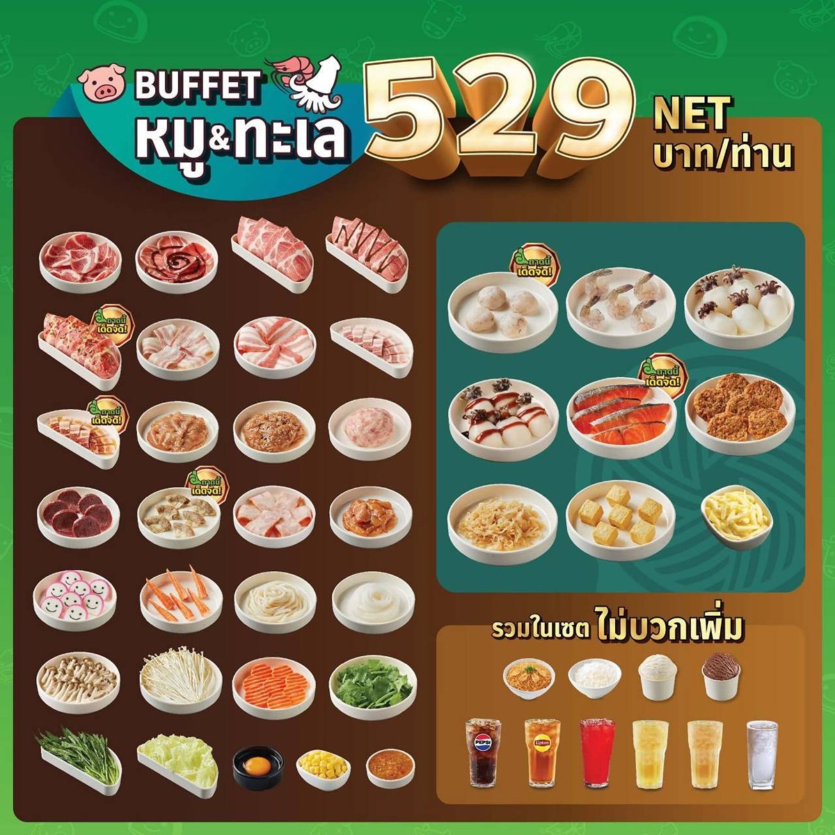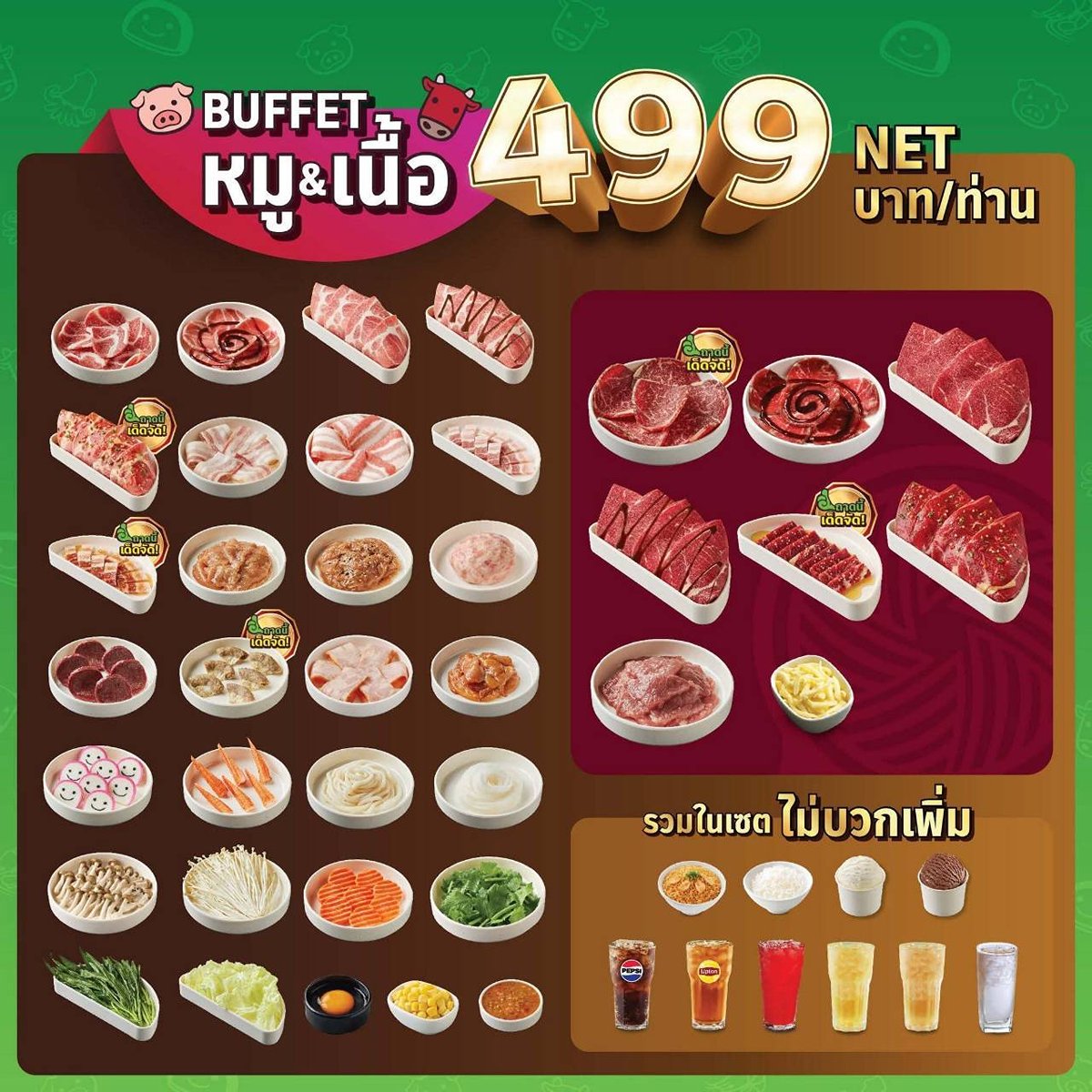 - 599.- Buffet รวมหมู เนื้อ และทะเล ก็อิ่มกันแบบตาแตกครบทุกเมนูไปเล้ย