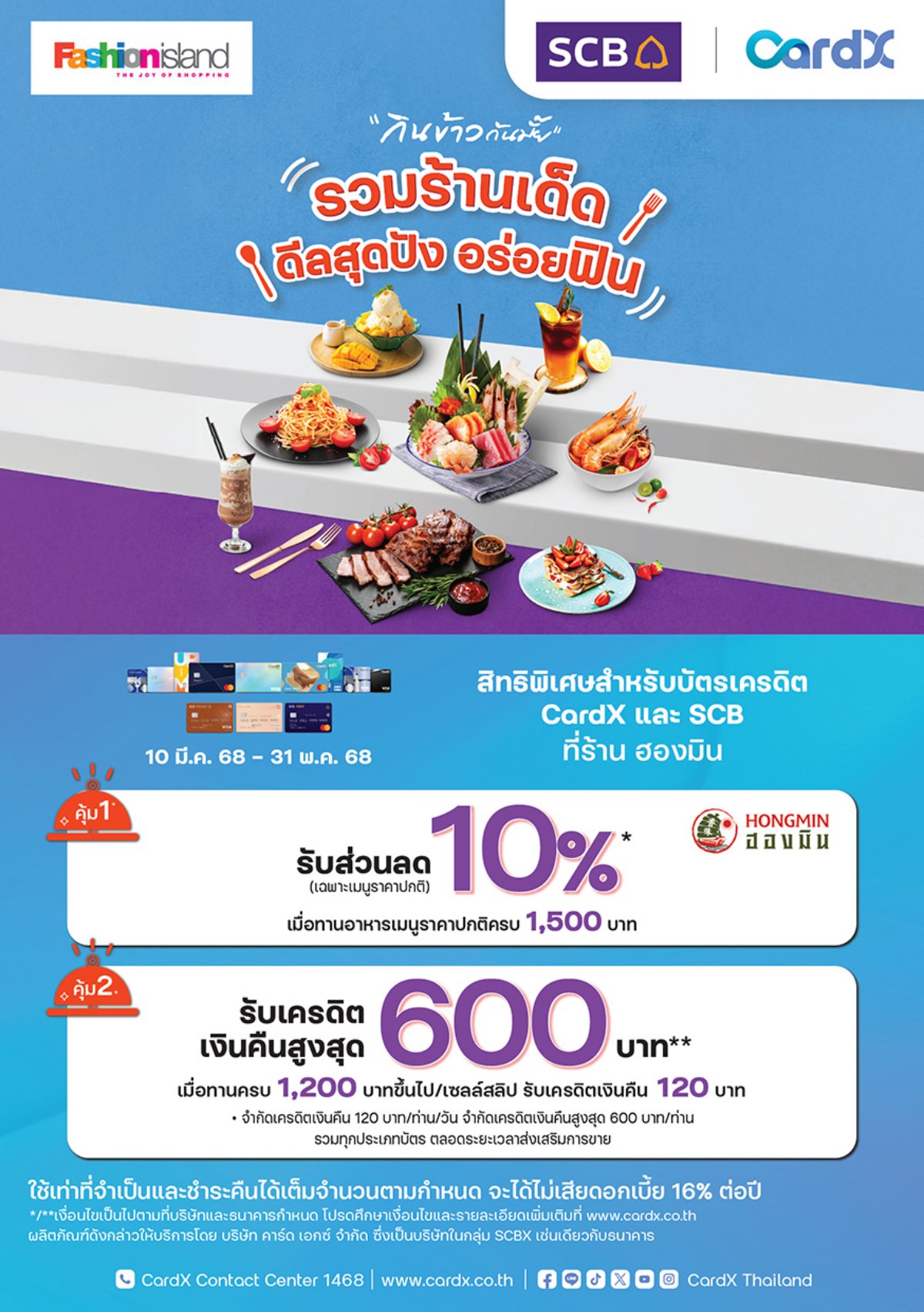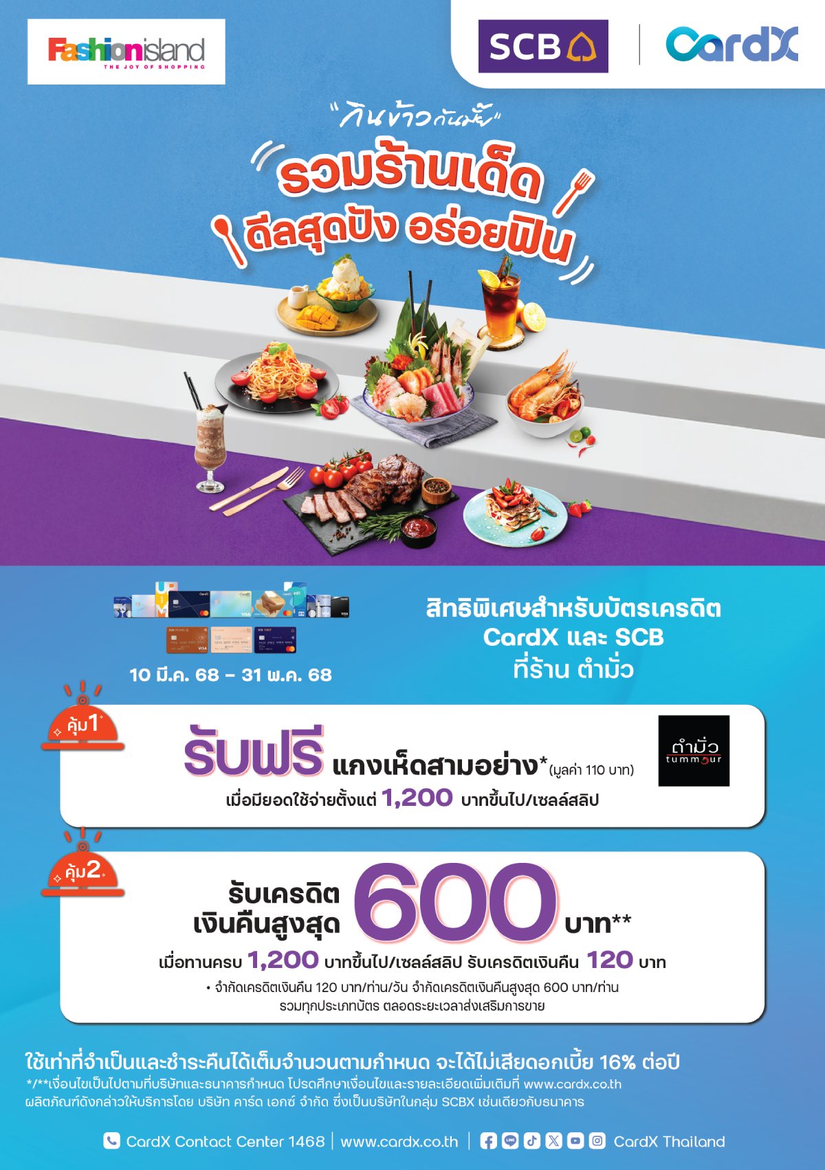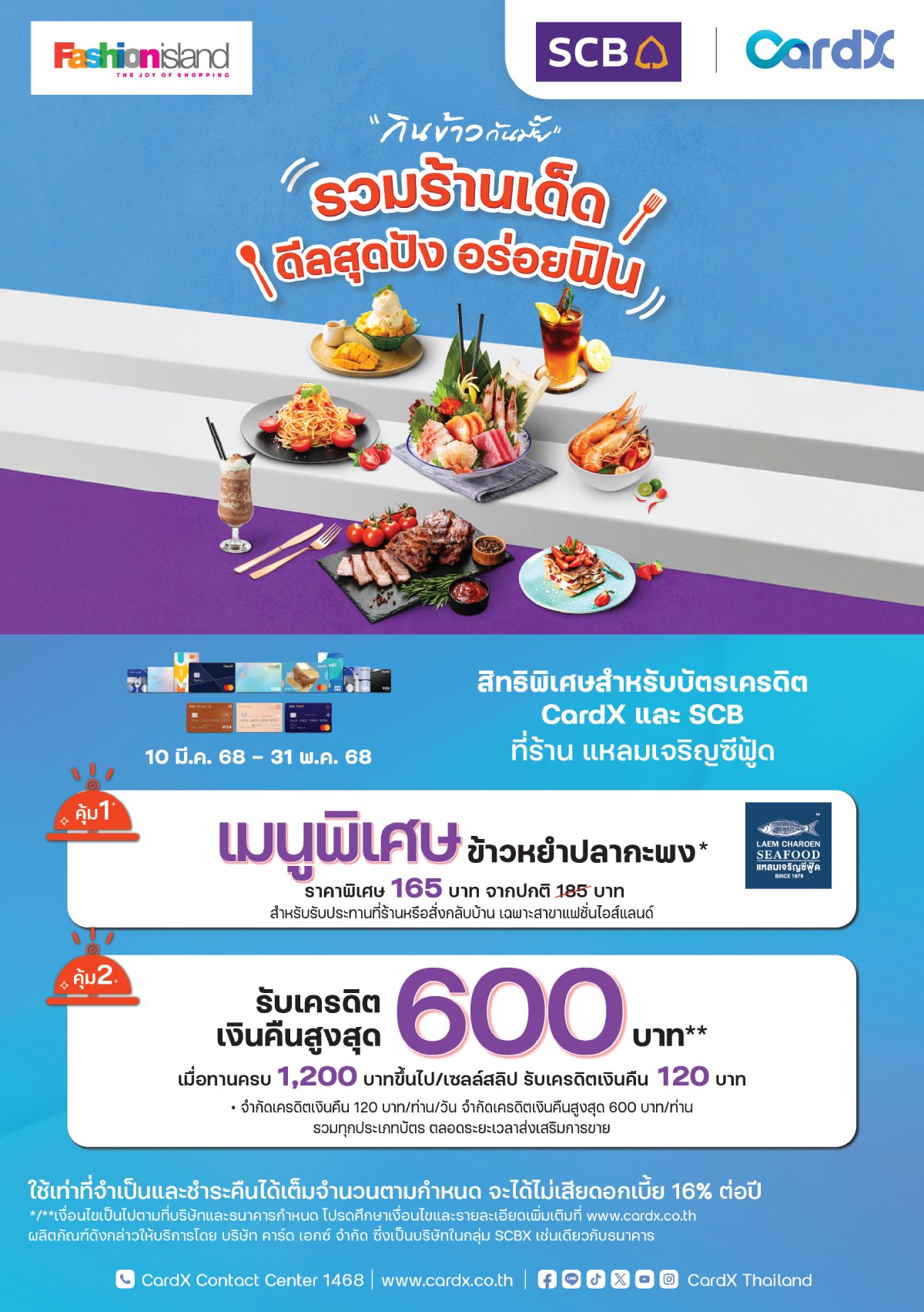 รวมร้านเด็ด ดีลสุดปังกับบัตรเครดิต CardX และ SCB ณ ร้านอาหารชั้นนำ ที่ ศูนย์การค้าแฟชั่นไอส์แลนด์ ที่ร่วมรายการ