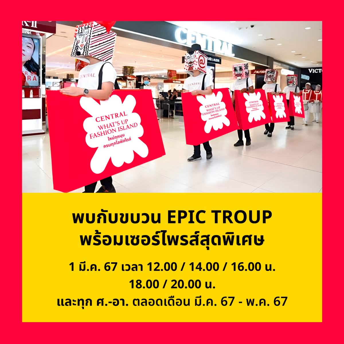 29 ก.พ. 25671 มีนาคม 2567 นี้ พบกับกิจกรรมสุดพิเศษ ต้อนรับ เซ็นทรัล @ แฟชั่นไอส์แลนด์