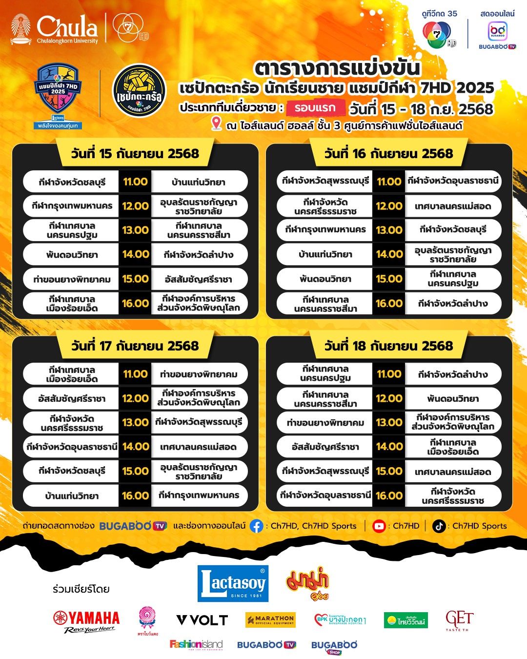 - รอบแบ่งสาย (16 ทีม) 15-18 กันยายน 2568