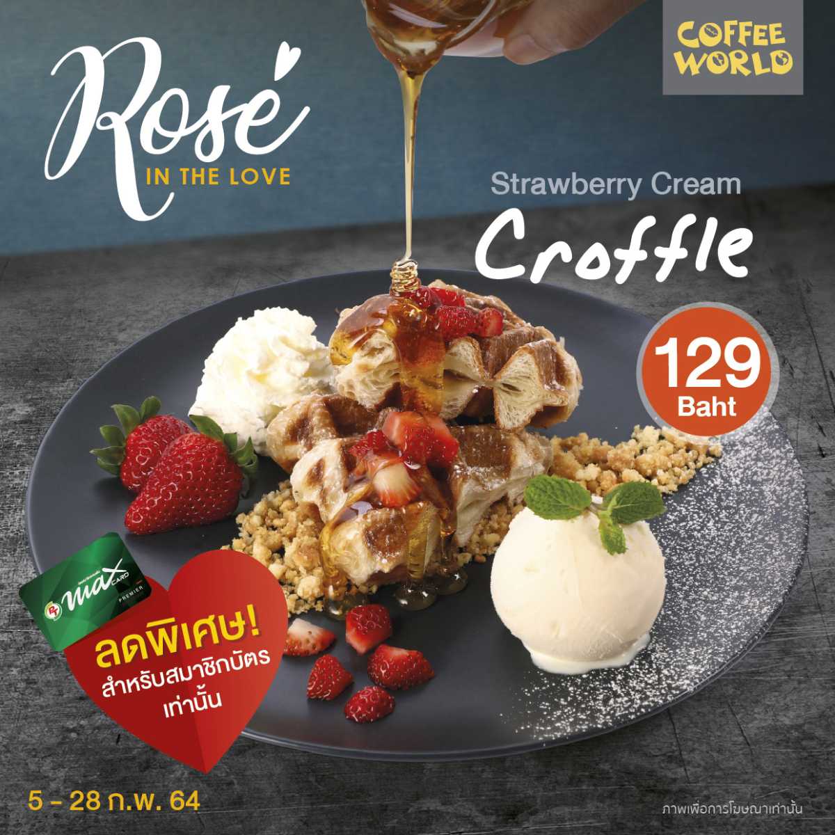 Strawberry Cream Croffle ราคา 129 บาท จากราคาปกติ 165 บาท
