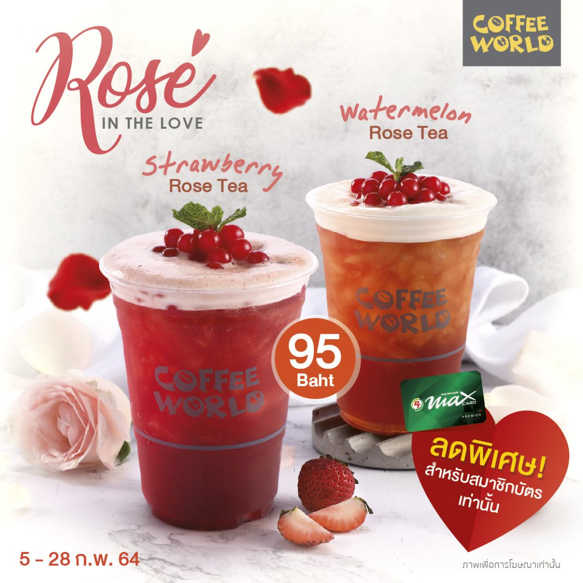 Strawberry Rose Tea ราคา 95 บาท จากราคาปกติ 135 บาท