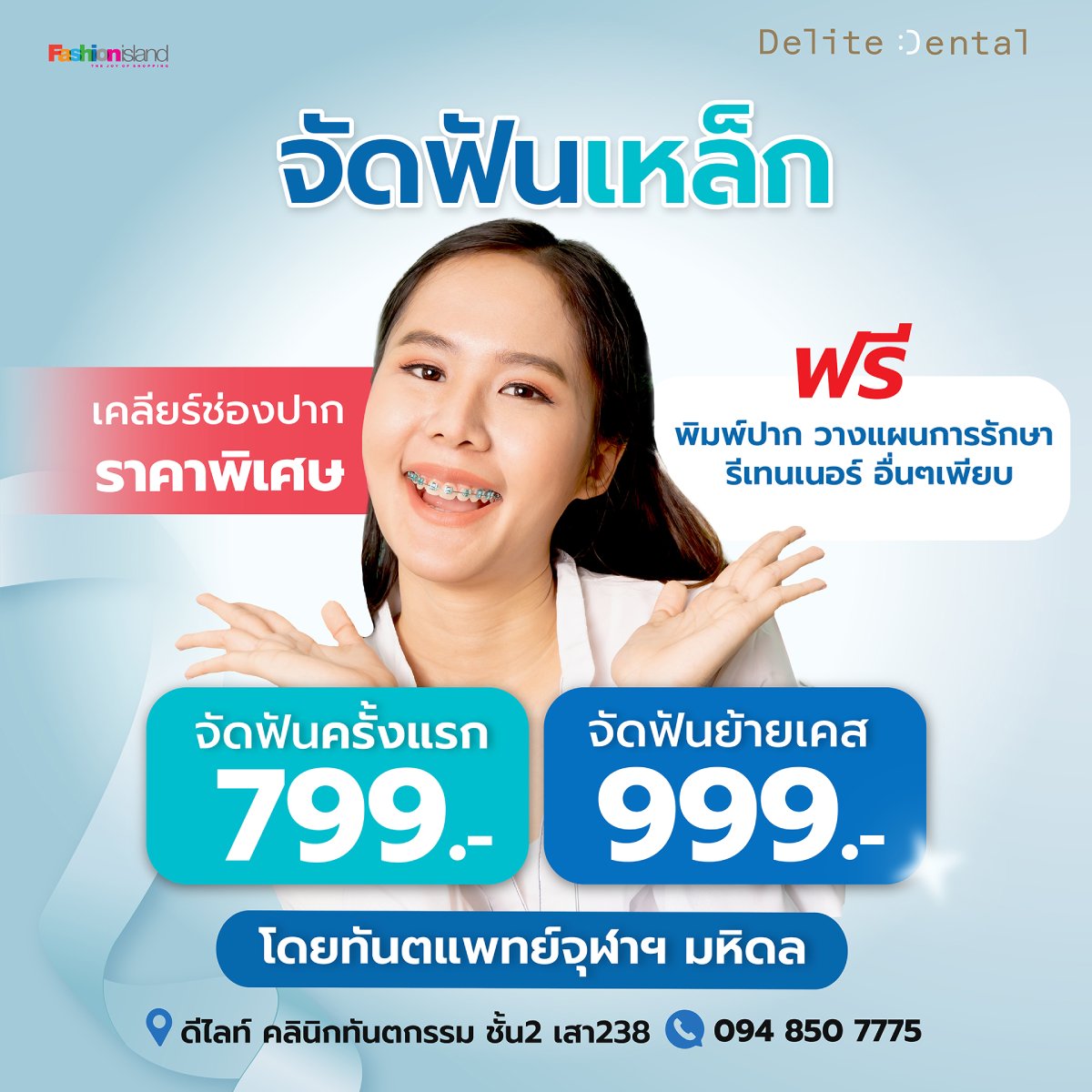 ดีไลท์ คลินิกทันตกรรม ศูนย์การค้าแฟชั่นไอส์แลนด์ ชั้น 2 ทำฟันโดยทันตแพทย์จุฬาฯ-มหิดล