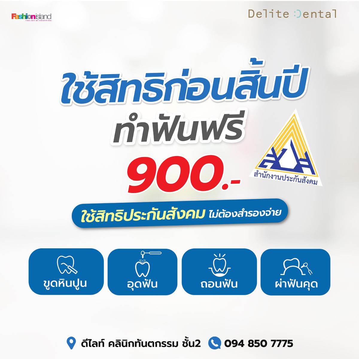 - สิทธิประกันสังคมทำฟันฟรี 900.-