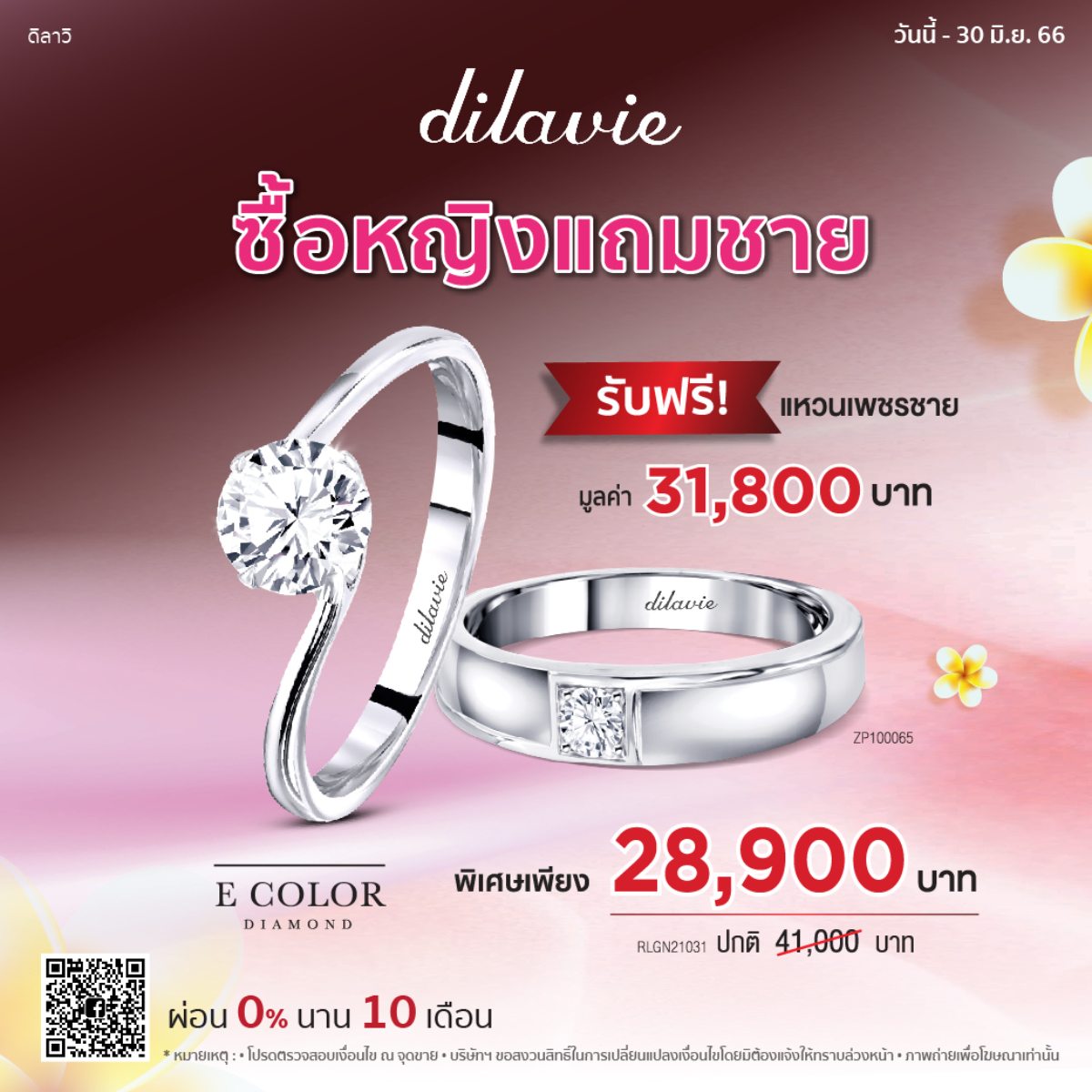 ผ่อนสบายๆ 0% นาน 10 เดือน พร้อมรับเครดิตเงินคืนกับธนาคารที่ร่วมรายการ แล้วพบกันที่ร้านเพชร dilavie