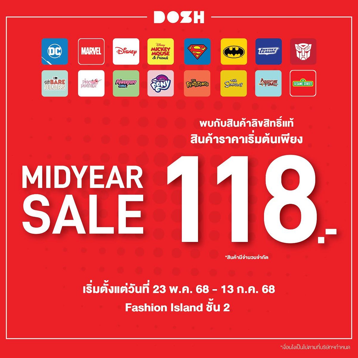 04 มิ.ย. 2568“MidYearSale ลด 80% ทั้งร้าน” DOSH สาขาแฟชั่นไอส์แลนด์ ชั้น 2