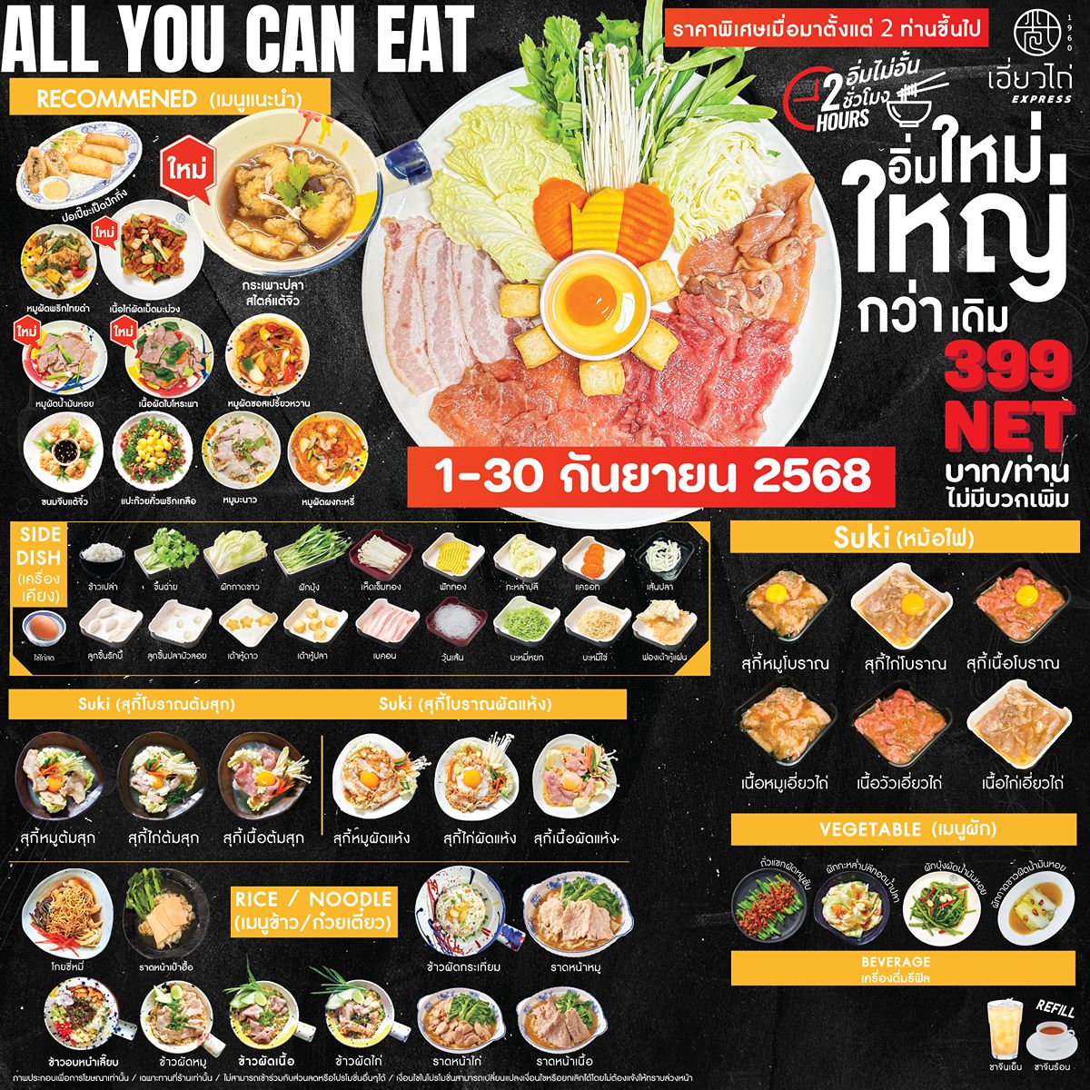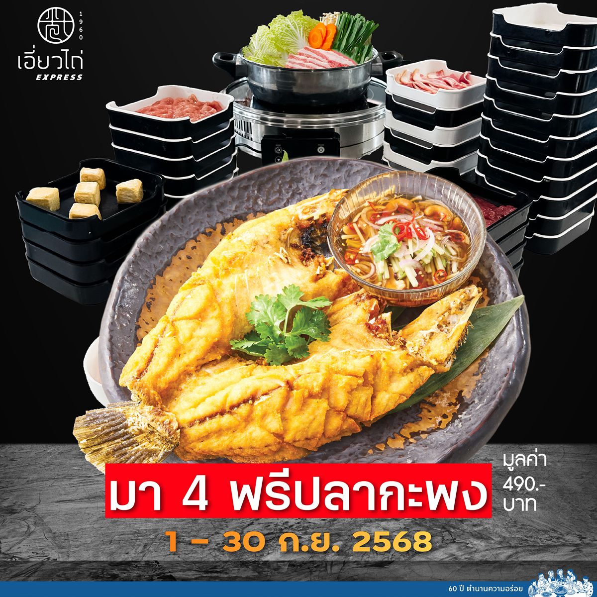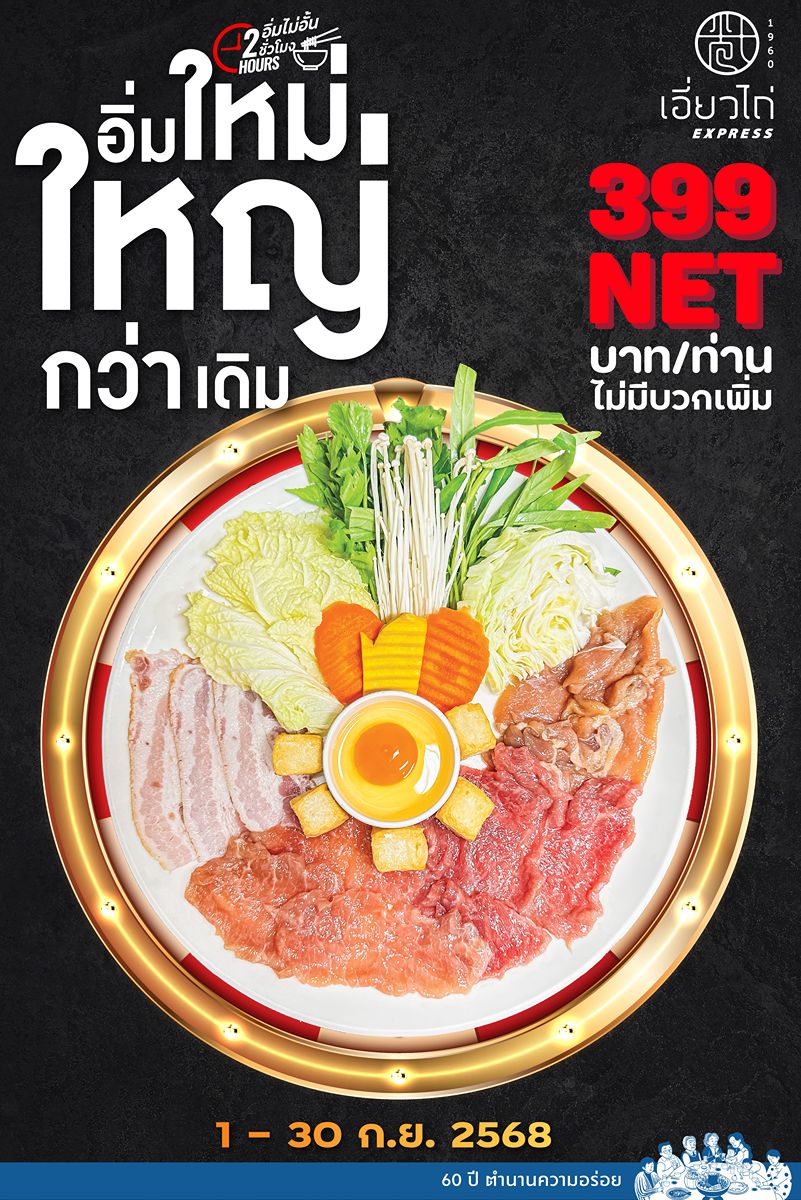 เดือนกันยานี้ อิ่มจัดหนักกับบุฟเฟ่ต์อิ่มไม่อั้น สุกี้เอี่ยวไถ่ น้ำซุปเต้าเจี้ยวสูตรต้นตำรับเอี่ยวไถ่ที่ขายมาตั้งแต่ปี 1960 อิ่มไม่ยั้งกับเมนูเด็ดกว่า 40 รายการ แค่นี้ยังไม่พอ! มา 4 คน(ราคาผู้ใหญ่) แจกฟรี ปลากะพงทอดราดน้ำปลา 1 ตัว มูลค่า 490 บาท