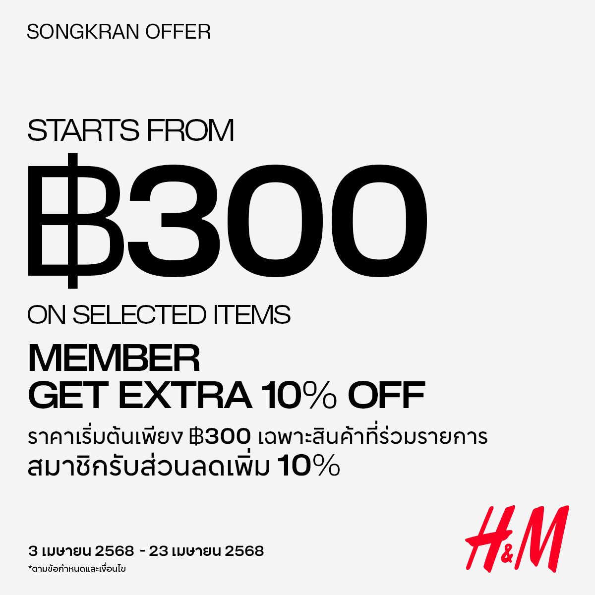 โปรโมชันเฉพาะสินค้าที่ร่วมรายการ ตั้งแต่วันนี้ – 23 เมษายน 2568 ช้อปที่ร้าน H&M ทุกสาขา