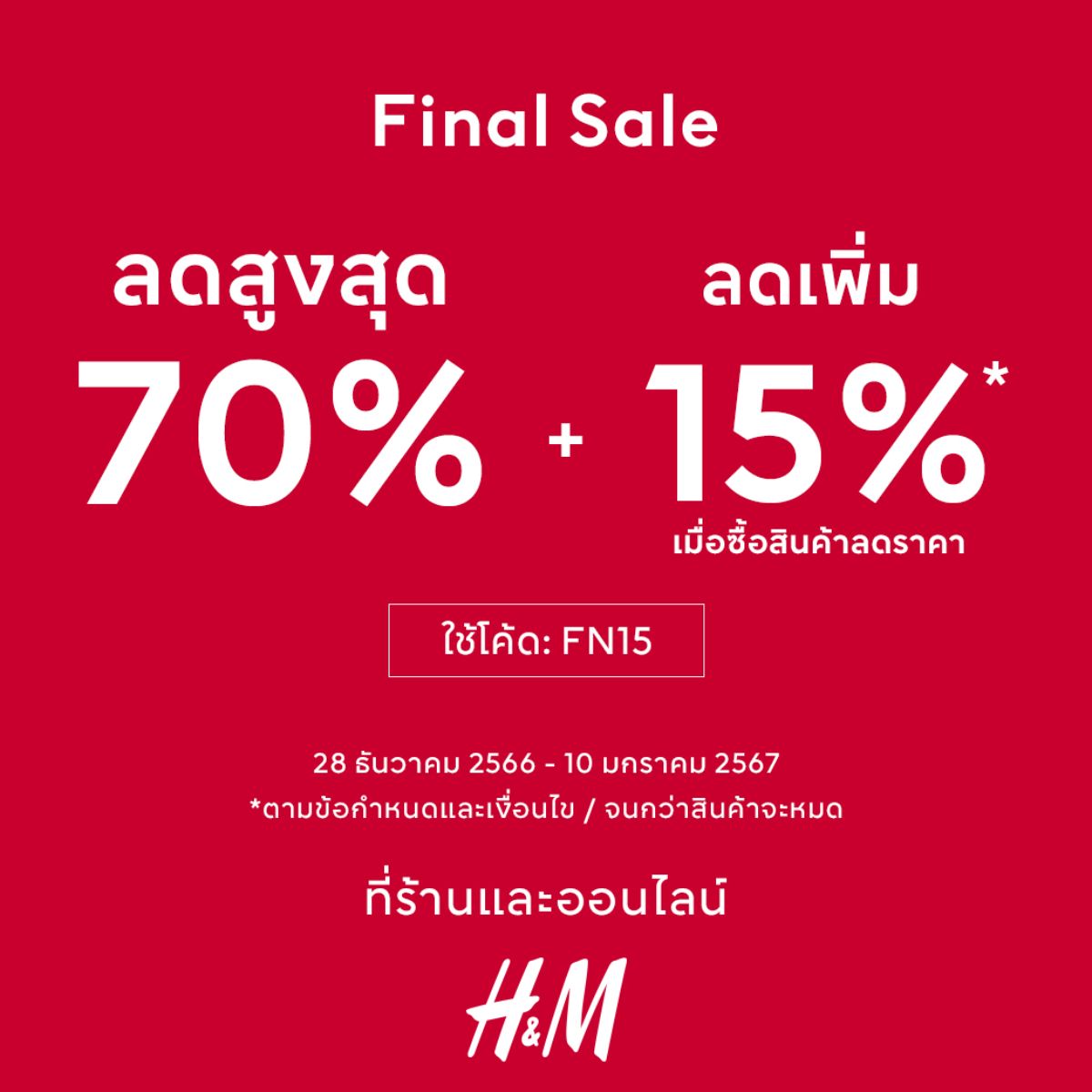 H&M จัดโปรแรงที่สายช้อปห้ามพลาด กับสินค้าลดราคาสูงสุด 70% และลดเพิ่มอีก 15% เมื่อซื้อสินค้าครบ 2 ชิ้นขึ้นไป*