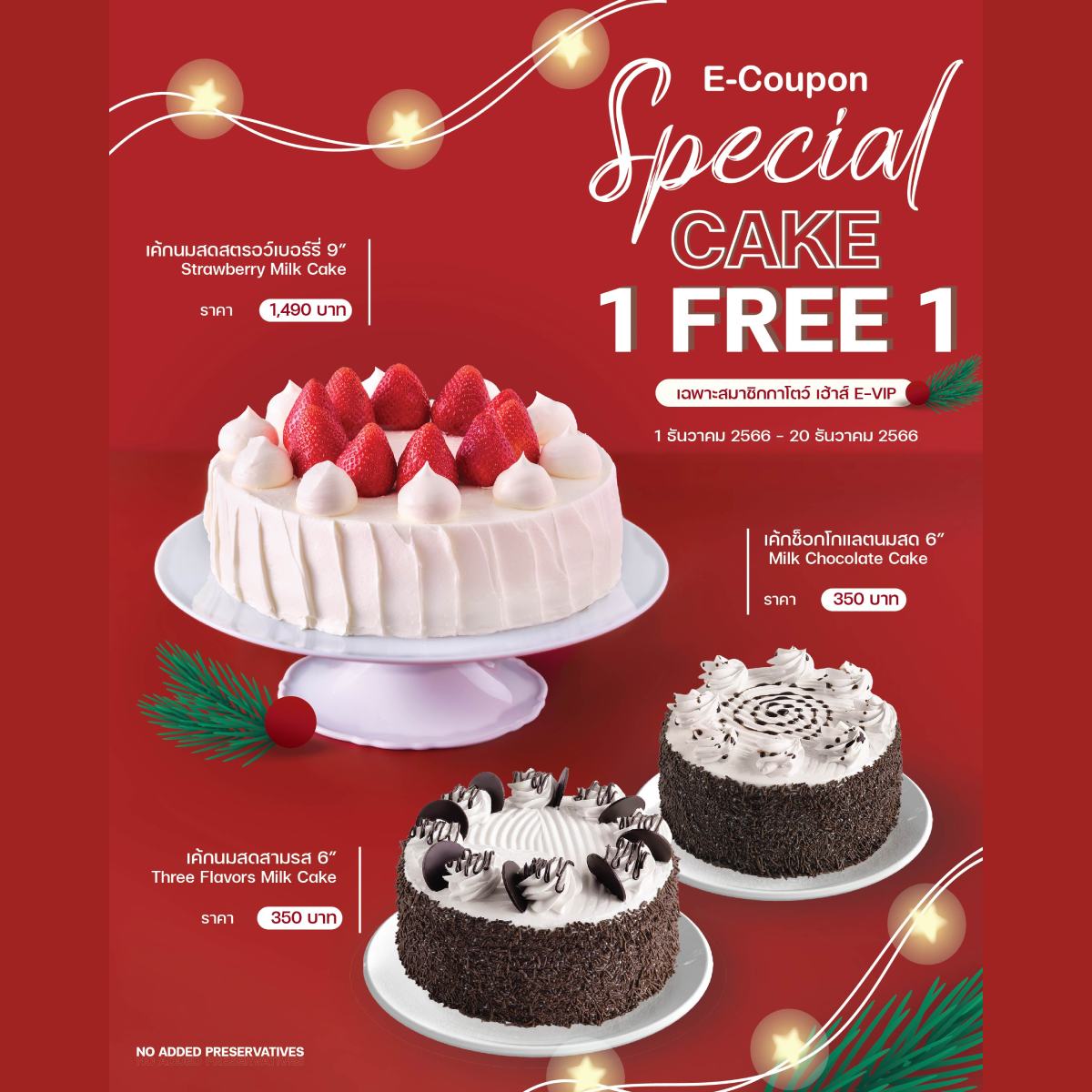 รับฟรีทันที เค้กช็อกฯนมสด 6” หรือ เค้กนมสดสามรส 6”