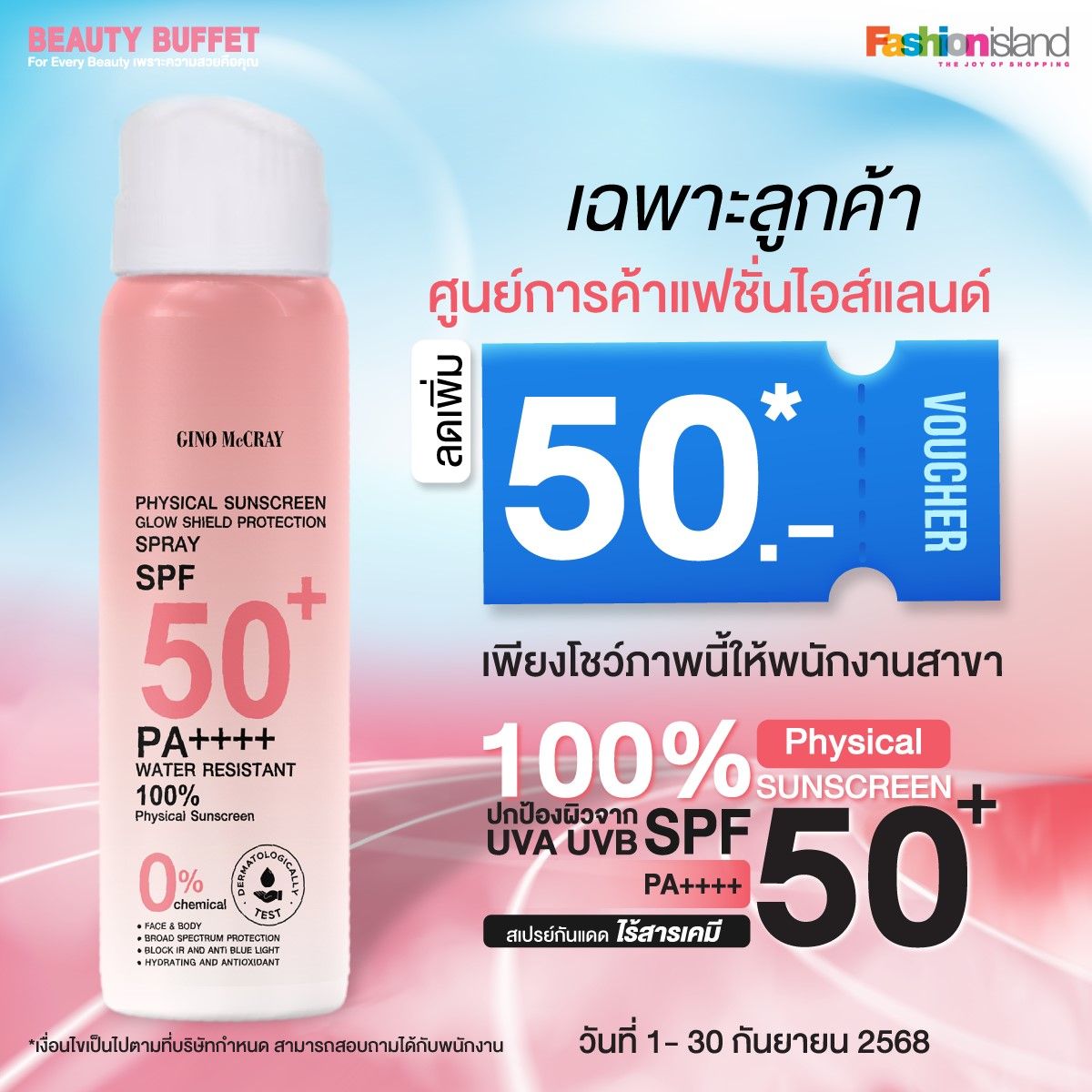เมื่อซื้อสินค้า GINO McCRAY PHYSICAL SUNSCREEN GLOW SHIELD PROTECTION SPF 50+ PA++++