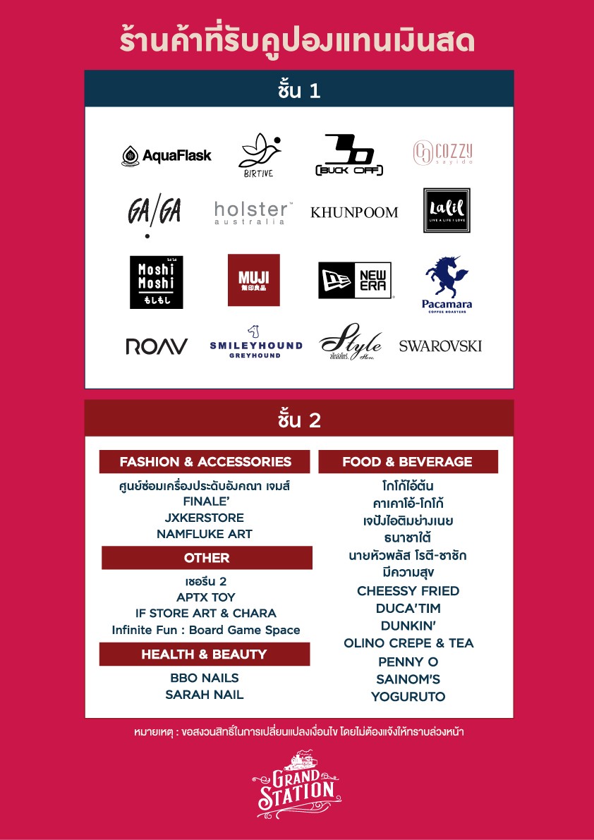 รายชื่อร้านที่รับคูปองโซน Grand Station