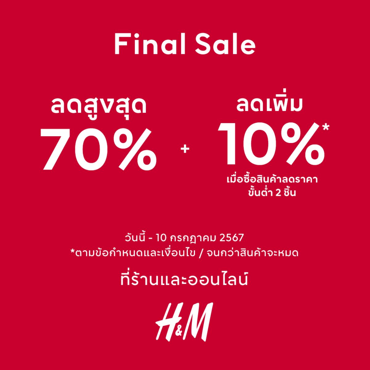H&M ลดสูงสุด 70% ลดเพิ่ม 10%