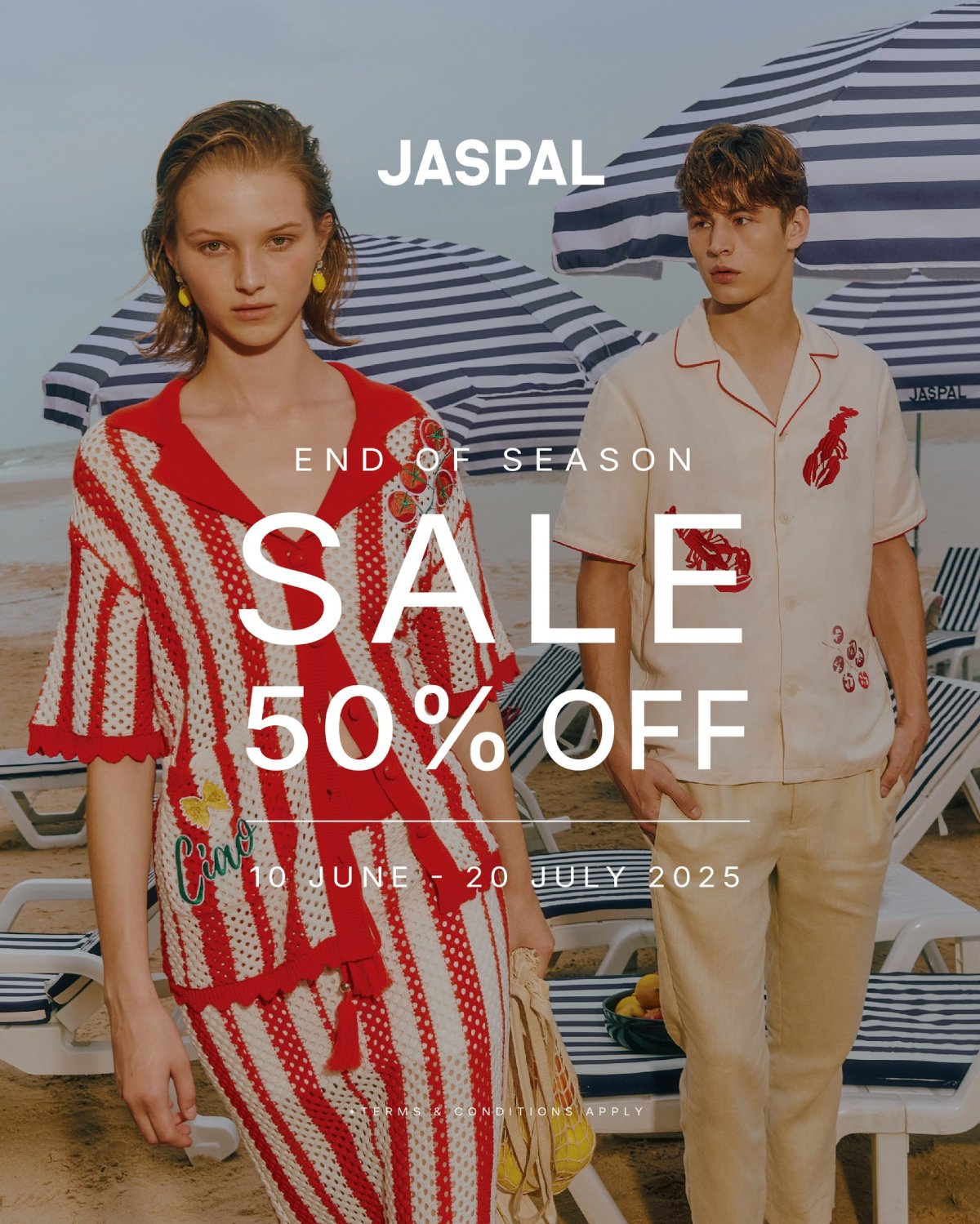 เริ่มแล้ว โปรโมชั่นสุดพิเศษที่ทุกคนรอคอย ‘Jaspal End of Season Sale 50% Off’ ช้อปไอเทมโปรด พร้อมรับส่วนลด 50% สำหรับเสื้อผ้า รองเท้า กระเป๋า และ Accessories ทั้งสุภาพสตรีและสุภาพบุรุษ
