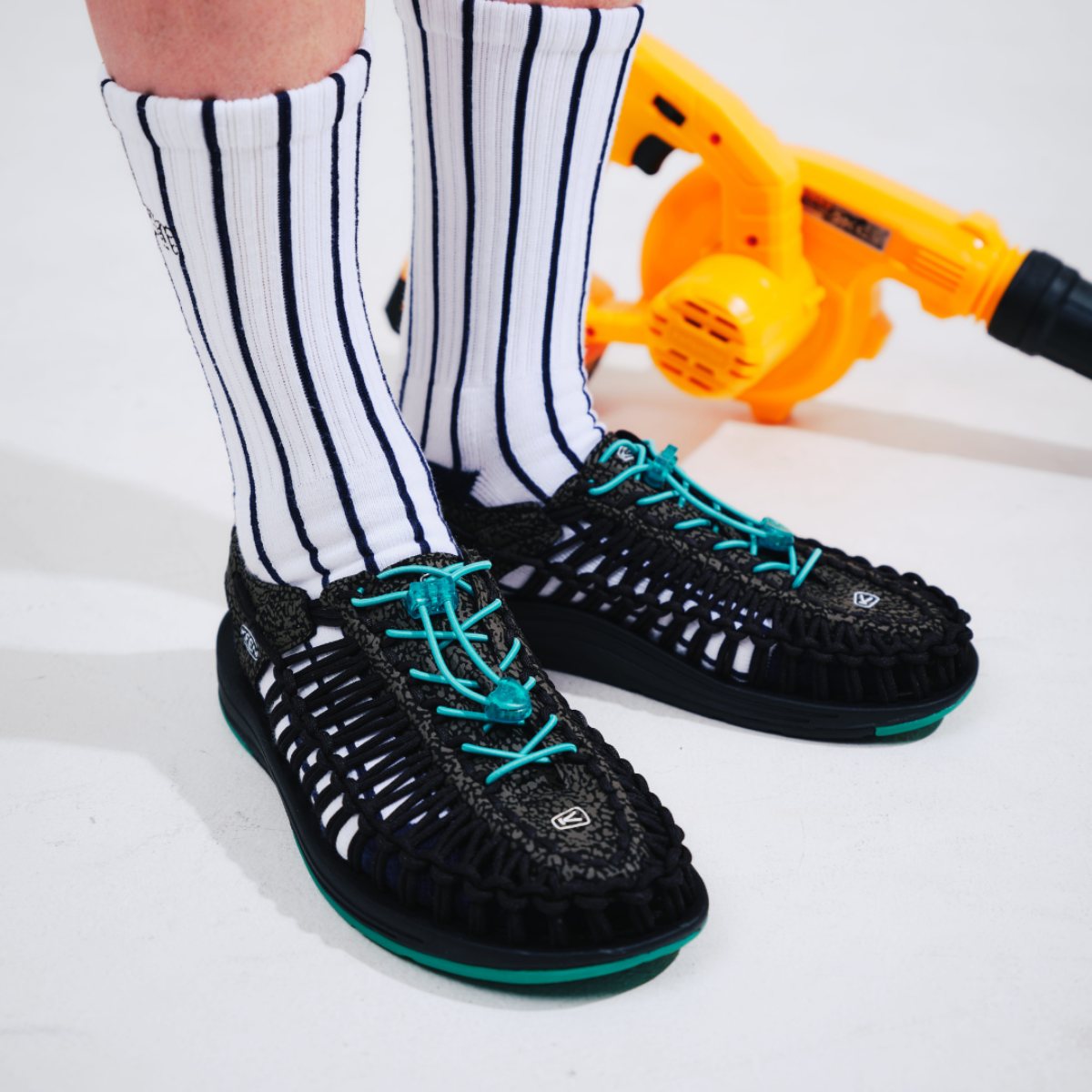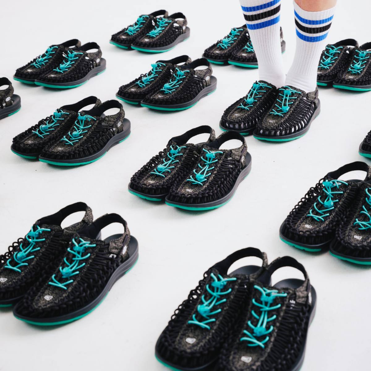 งาน collaboration ร้อนๆจาก KEEN x atmos ในปี 2023 นี้มีมาให้อย่างจุใจถึง 2 รุ่น โดยจะแบ่งเป็นรุ่นที่ทำกับร้าน Atmos สำหรับผู้ชาย และรุ่นที่ทำกับร้าน Atmos Pink ที่เป็นร้าน Atmos ในฝั่งของผู้หญิงในประเทศญี่ปุ่น ซึ่งทั้ง 2 รุ่นนี้มาพร้อมกับลวดลายที่เป็นเอกลักษณ์ โดดเด่นอย่างในฝั่งของ Atmos จะมาพร้อมลาย “Elephant Print” และสีสันที่คุ้นตา อย่างสี Jade ที่อยู่บนสาย Bungee Cord และพื้น Outsole ของรุ่น Uneek หลายคนที่เป็นแฟน Sneaker Exclusive จากทาง atmos จะร้องอ๋อทันทีว่า นี่คือสี Exclusive ของแบรนด์ จากที่เคยไปปรากฏอยู่บนรองเท้ารุ่น Air Max 1 Elephant Print จนกลายเป็น Sneaker สุด Iconic จากทาง atmos ถึงทุกวันนี้