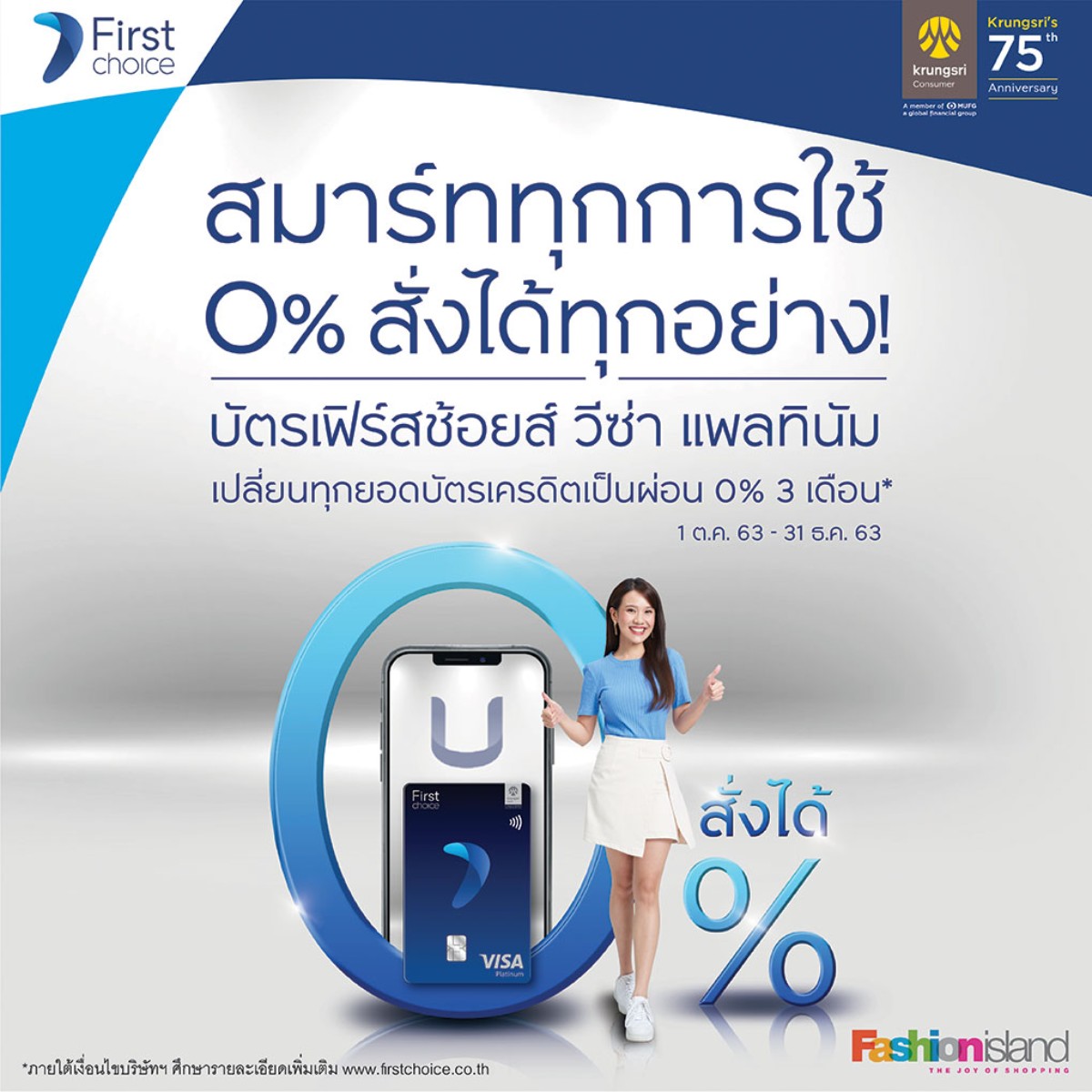 บัตรกรุงศรีเฟิร์สช้อยส์ วีซ่า แพลตินั่ม สมาร์ททุกการใช้จ่าย 0% สั่งได้ทุกอย่าง