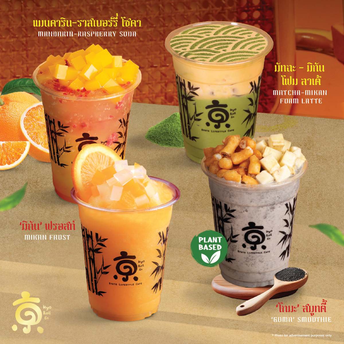 ส้ม ‘มิกัน’ ปั่นสดๆ แก้วต่อแก้ว…ท็อปด้วยวุ้นคันเต็นทำจากสาหร่ายทะเลรสส้ม เคี้ยวหนึบๆ หวานหอมสดชื่น - Matcha-Mikan Foam Latte