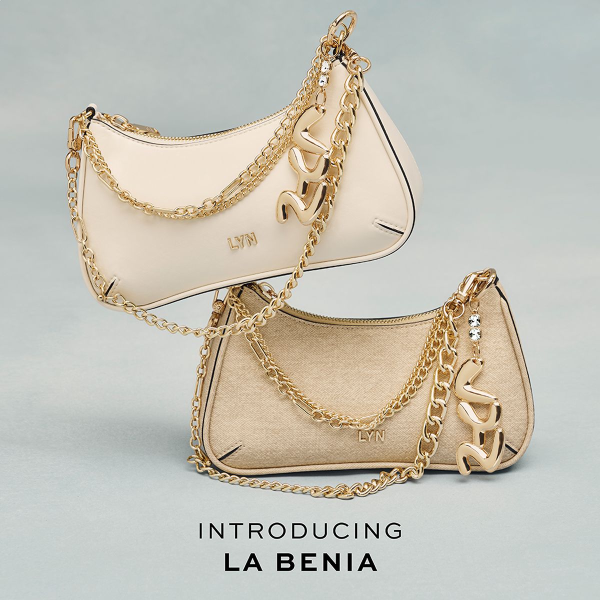 คุณ ปราง–กัญญ์ณรัณ @ladiiprang กับกระเป๋า La Benia ตัวแทนของความสง่างามในรูปทรงสี่เหลี่ยมโค้งมนสุดโรแมนติค โดดเด่นด้วยฮาร์ดแวร์โซ่หลากหลายขนาดถักทอร้อยเรียงกัน เกิดเป็นสายกระเป๋าโซ่ยาวช่วยเพิ่มเซนส์ความเท่ให้กับตัวไอเทม เสริมด้วยชาร์มโลโก้แบรนด์ดีไซน์ฟลูอิดพลิ้วไหว มาในสามรูปแบบ ตั้งแต่ผ้าเดนิมสีฟ้าและเบจ เทกเจอร์กลิตเตอร์สีดำและสีแบล็กเมทัล รวมถึงรูปลักษณ์เบสิคอย่างสีเบจ สีดำ และชมพูอ่อน