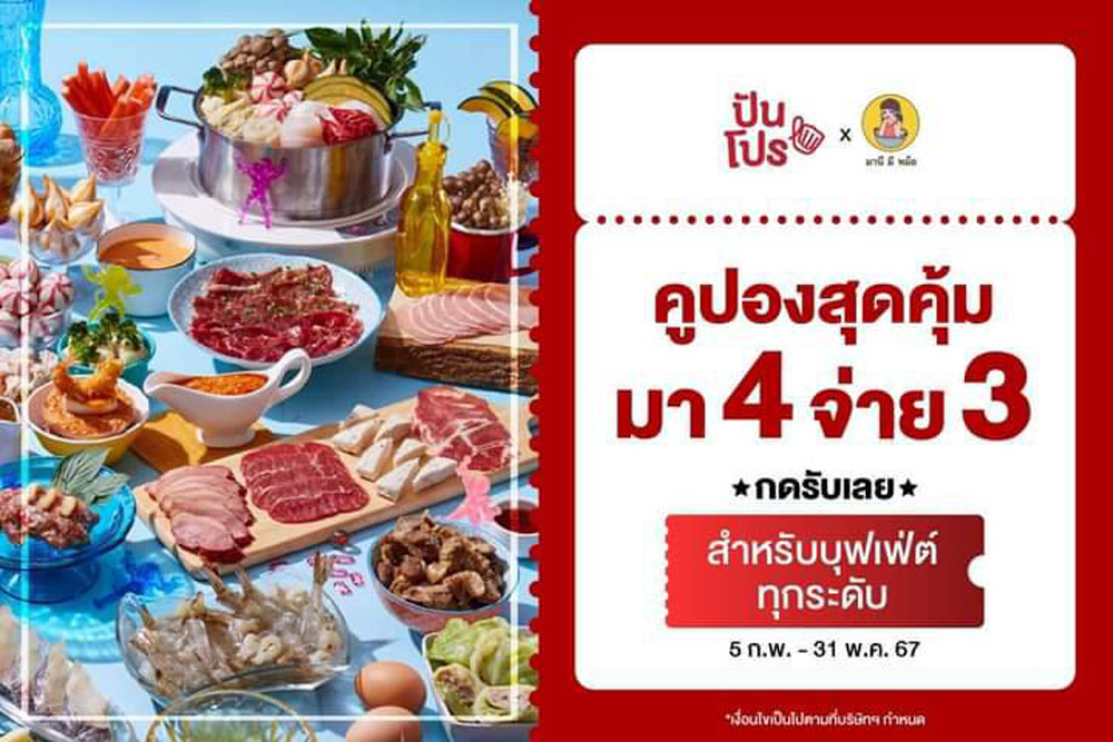 โปรแรงสะใจ! บุฟเฟ่ต์ #มา4จ่าย3 คุ้มสุด! ช้าหมด กดรับสิทธิ์ด่วน