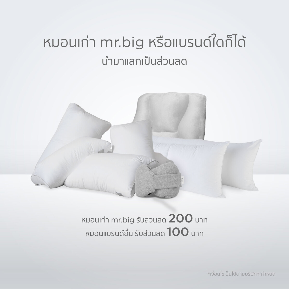 หมอน-ที่นอนเก่ามีค่า อย่าทิ้ง ! สามารถนำมาใช้แลกเป็นส่วนลดในการซื้อหมอน ที่นอน ท็อปเปอร์หรือสินค้าอื่น ๆ ของ mr.big ได้