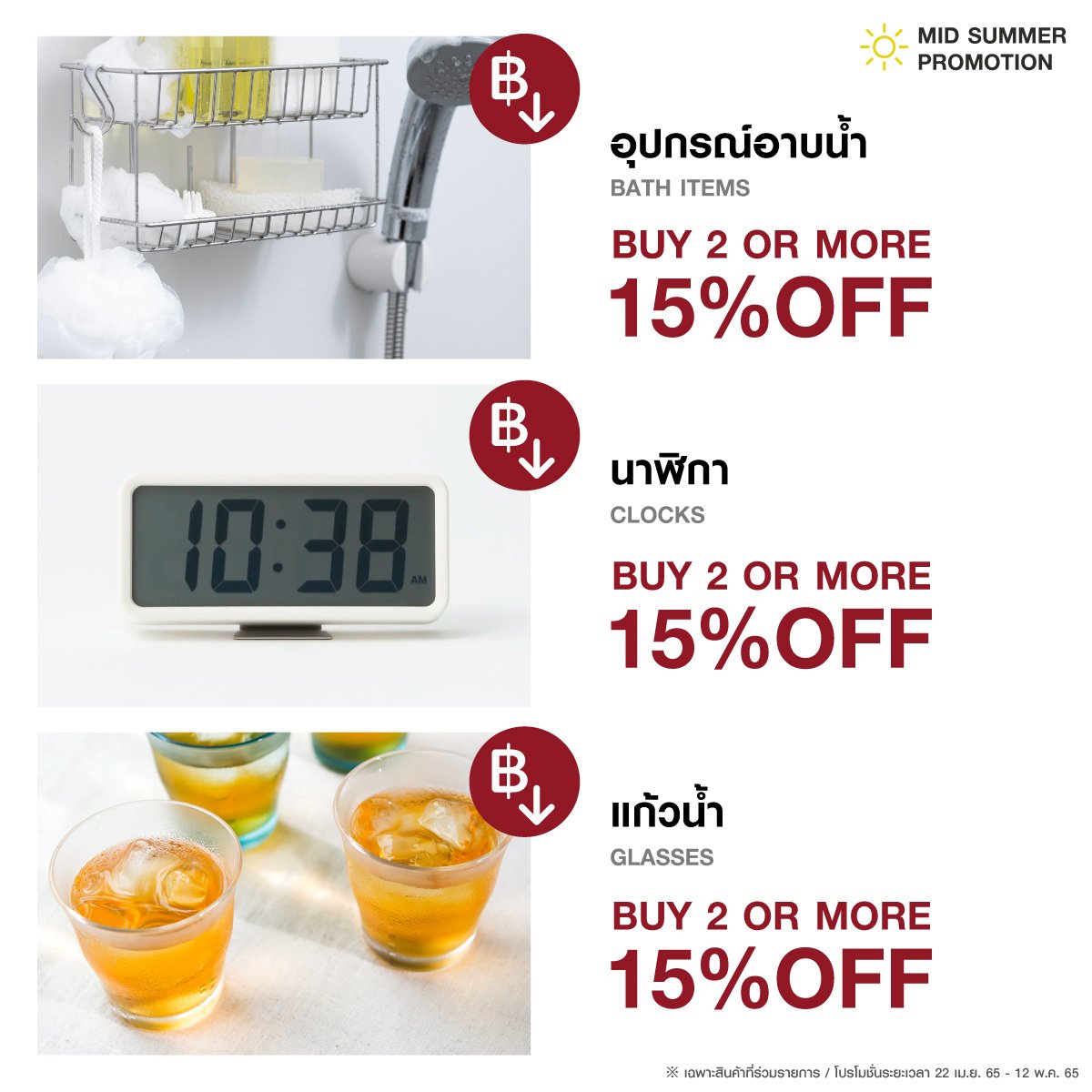 22 เม.ย. 2565MUJI จัดโปรโมชั่น MID SUMMER ต้อนรับหน้าร้อน ลดสูงสุด 15% (เฉพาะสินค้าที่ร่วมรายการ)