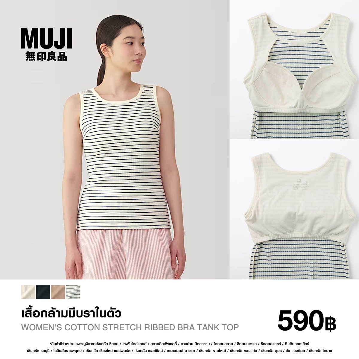 NEW : MUJI BRA TANK TOP ⁣New Arrivals เสื้อกล้ามแขนกุดพร้อมบราในตัว – สวมง่ายสบายทุกลุค ด้วยเนื้อผ้า Rib Stretch Cotton ยืดหยุ่นกระชับตัว มาพร้อมบราในตัว รองรับทรงสวย ไม่ต้องใส่ซ้อนหลายชั้น⁣