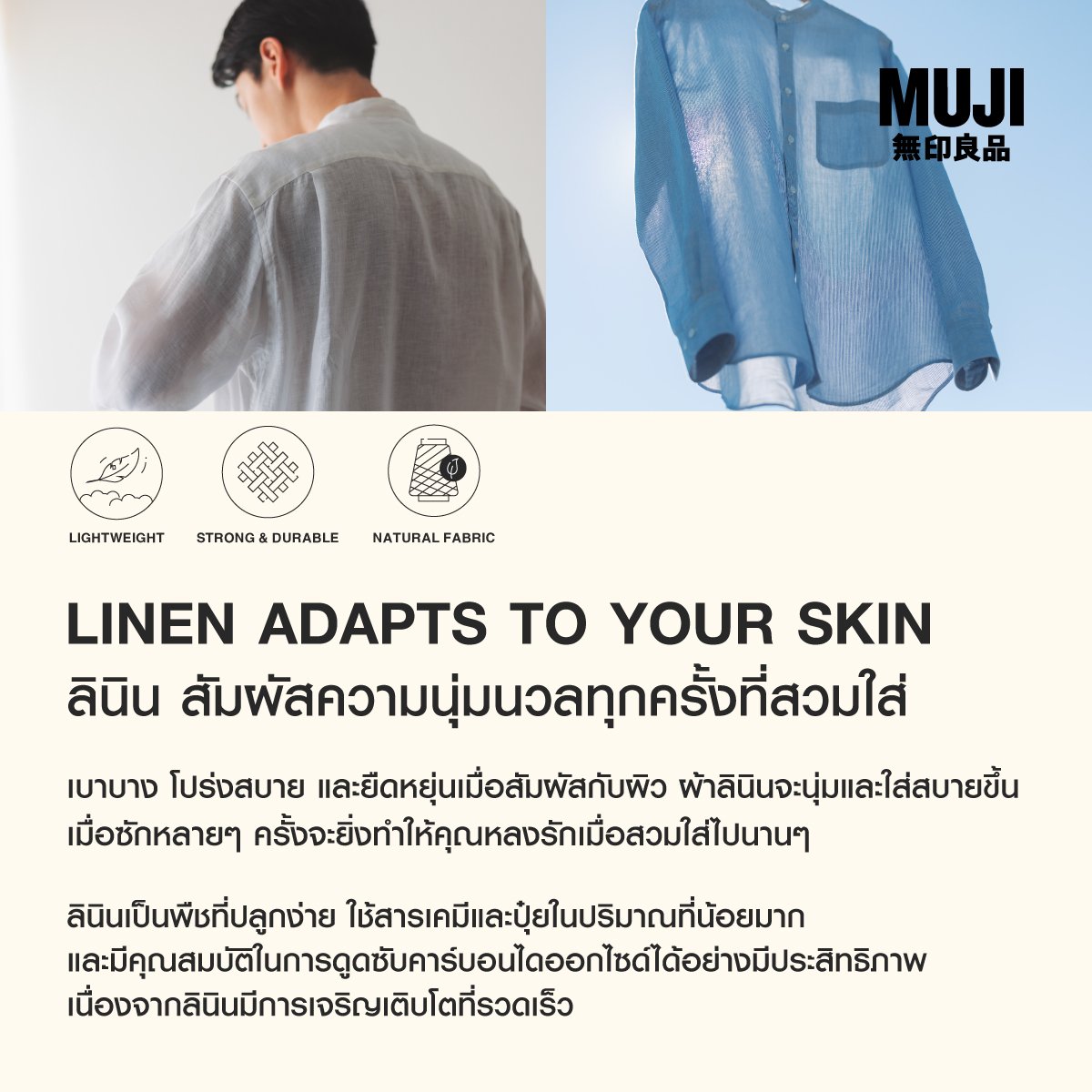 MUJI LINEN เสื้อลินินจากมูจิ สัมผัสความนุ่มนวลทุกครั้งที่สวมใส่ ⁣โดดเด่นด้วยคุณสมบัติของผ้าลินิน ที่จะนุ่มและใส่สบายขึ้นเมื่อซักหลายๆ ครั้ง เหมาะกับการสวมใส่ในชีวิตประจำวัน มาพร้อมดีไซน์ที่สวย เรียบง่าย ใส่ได้ทุกโอกาส⁣