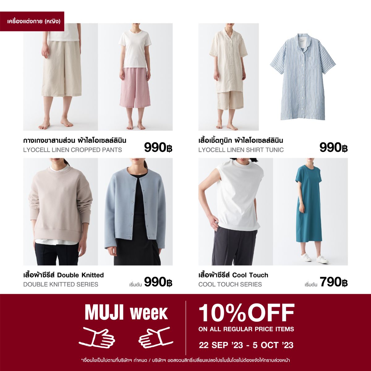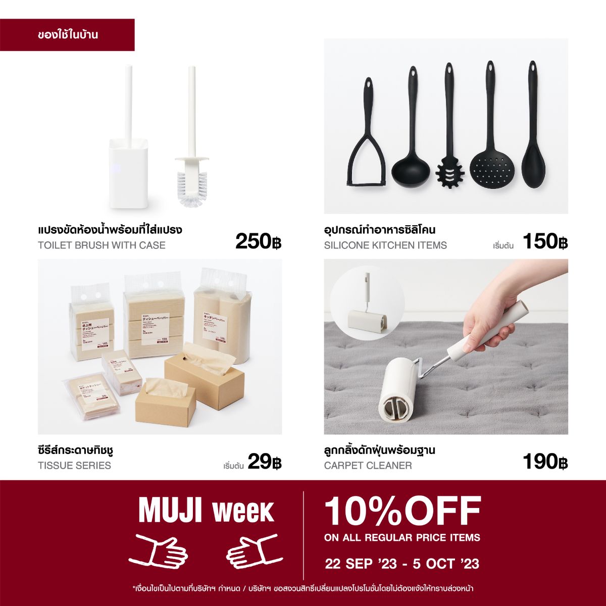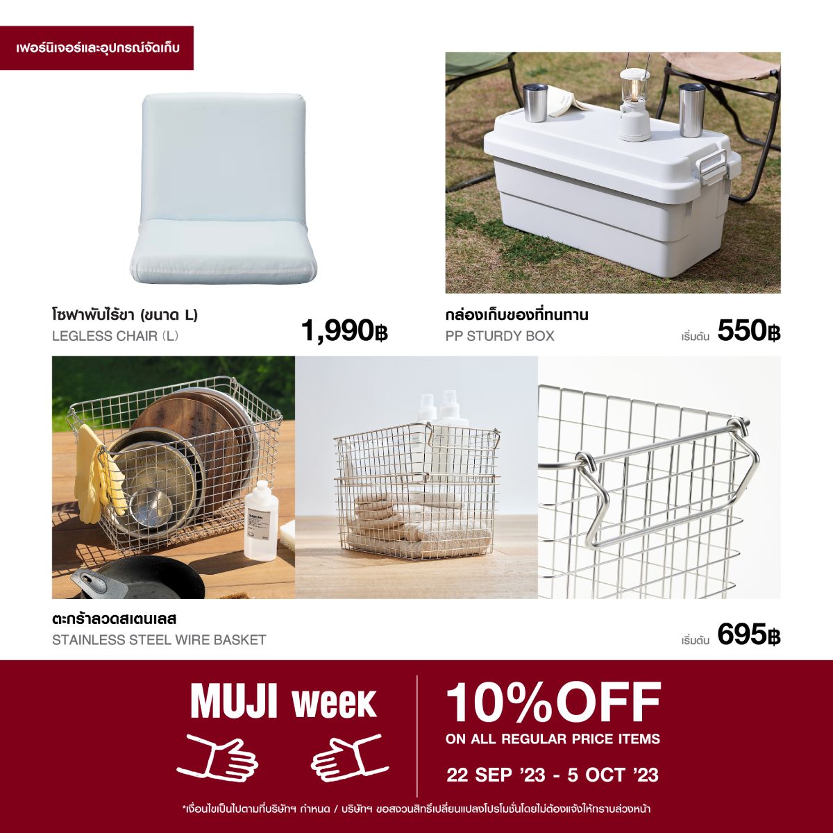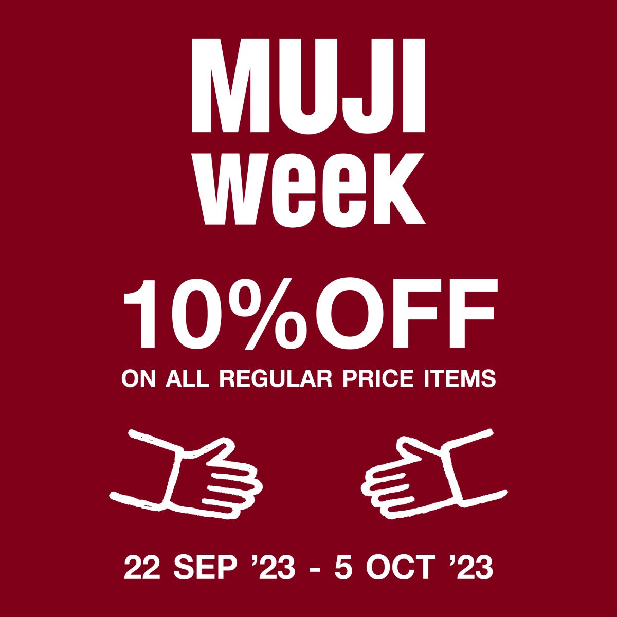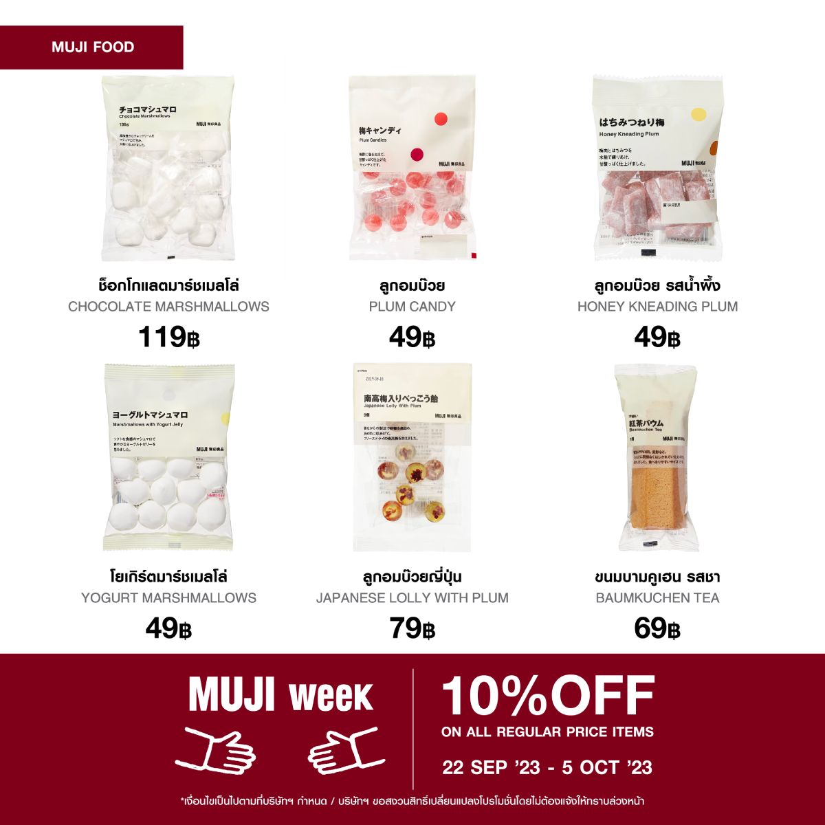 22 ก.ย. 2566MUJI Week สัปดาห์แห่งการขอบคุณ มูจิจัดโปรโมชั่นลด 10% ทุกรายการ* วันที่ 22 ก.ย. 66 – 5 ต.ค. 66