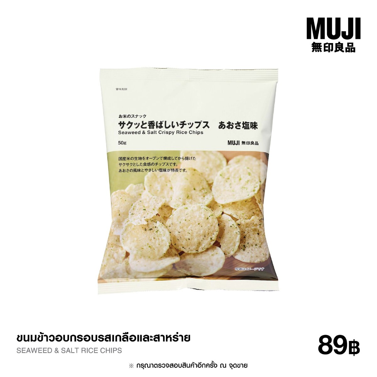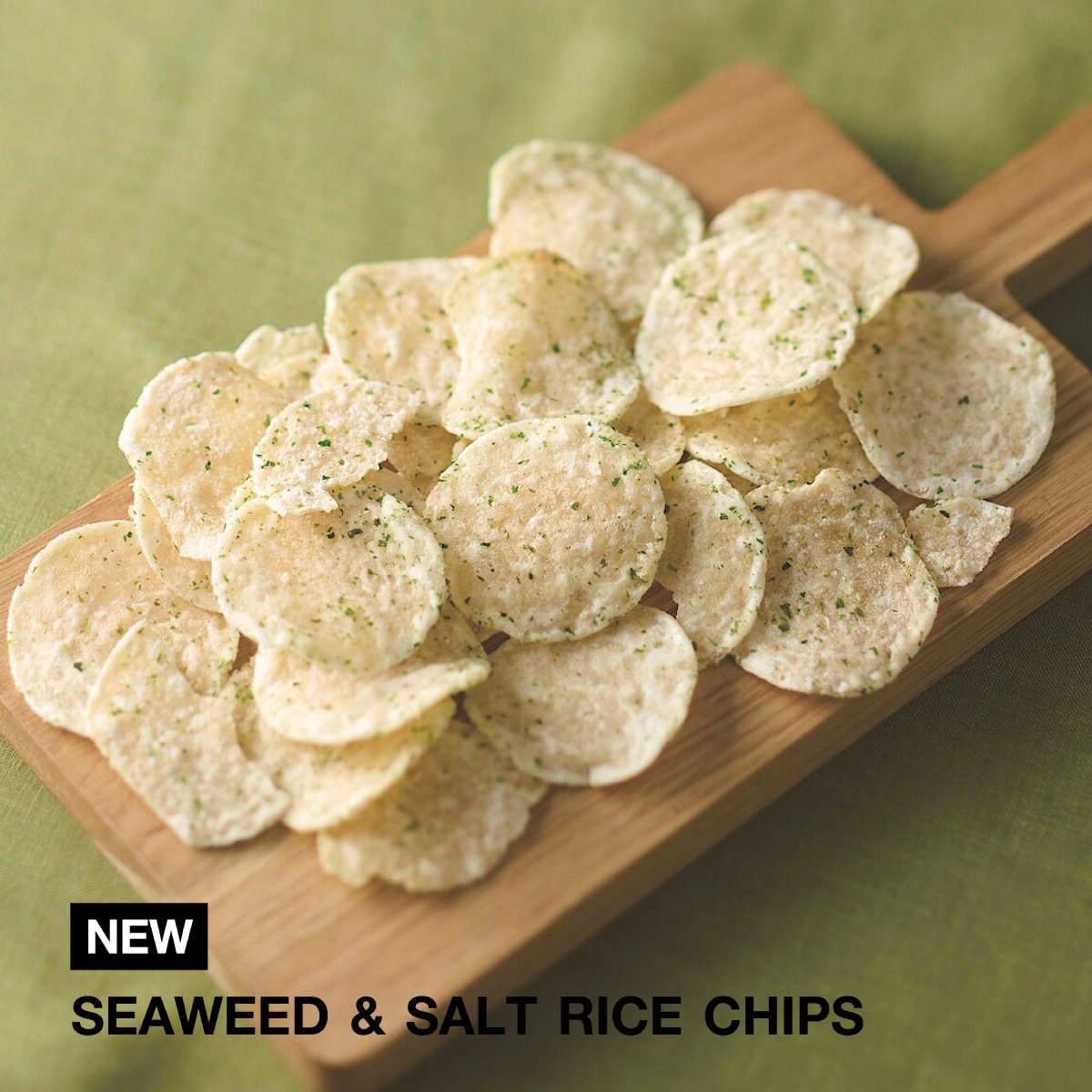 NEW : SEAWEED & SALT RICE CHIPS ความอร่อยที่ลงตัวจากข้าวญี่ปุ่น ขนมข้าวทอดกรอบที่ผลิตจากข้าวคุณภาพดีซึ่งปลูกในประเทศญี่ปุ่น ปรุงรสด้วยเกลือและสาหร่ายอย่างพิถีพิถัน ให้รสชาติที่พอดี หอมกลิ่นสาหร่ายชัดเจนในทุกคำ เป็นรสชาติที่ทานง่ายแต่ไม่น่าเบื่อ เหมาะสำหรับเป็นของว่างคู่ใจในวันสบายๆ หรือพกไปทานเล่นได้ทุกที่
