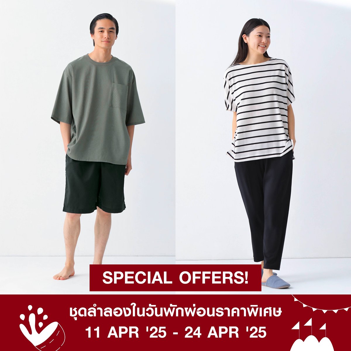 ชุดเซตลำลอง สำหรับวันพักผ่อนจากมูจิ มอบส่วนลดพิเศษให้คุณในช่วงซัมเมอร์นี้ ใส่สบาย เนื้อผ้าทิ้งตัวไม่รัดรูป สีสันสบายตา โปรโมชั่นตั้งแต่ 11 เม.ย. 68 – 24 เม.ย. 68 เท่านั้น