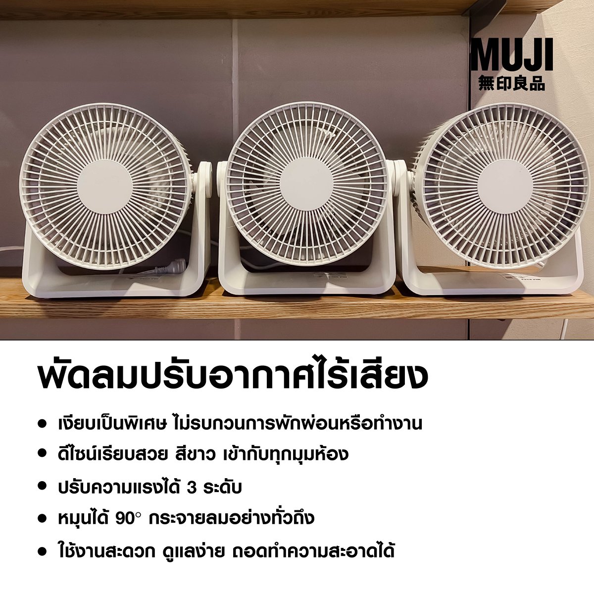 11 มี.ค. 2568EVERYDAY WITH MUJI : พัดลมปรับอากาศ Low-Noise เย็นสบาย อากาศสดชื่น แถมไร้เสียงรบกวนด้วย พัดลมปรับอากาศ Low-Noise หมุนได้ 90° พร้อมกระจายลมอย่างทั่วถึง ดีไซน์สวยเหมาะกับทุกมุมห้อง
