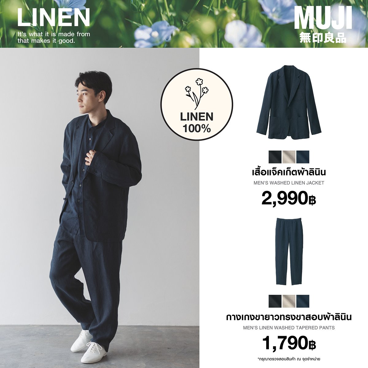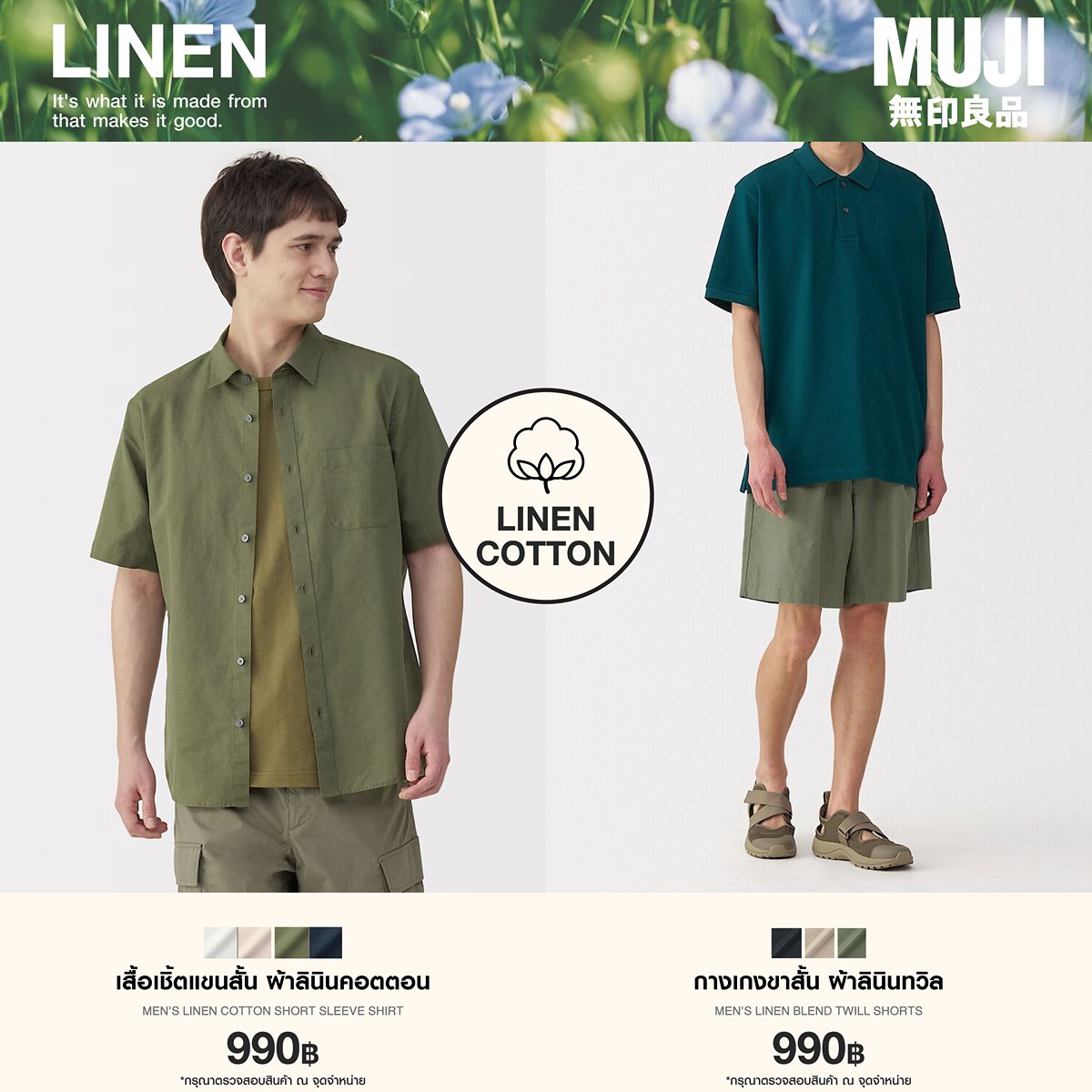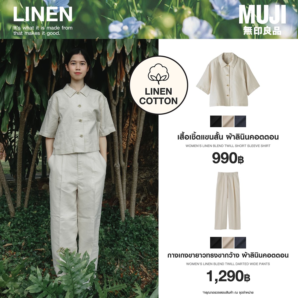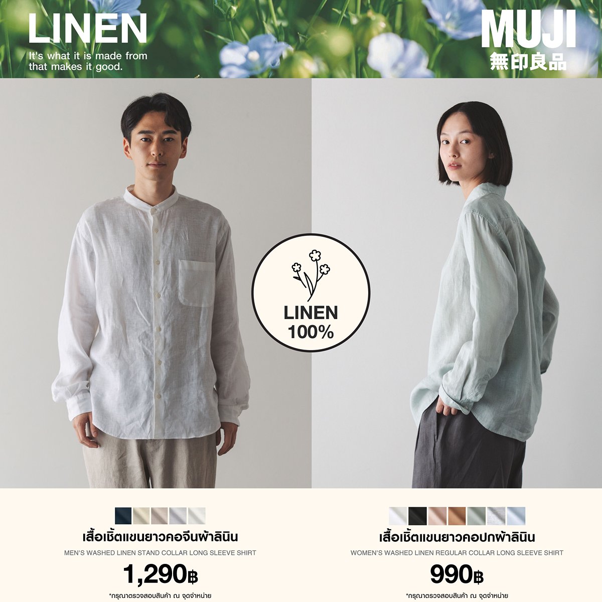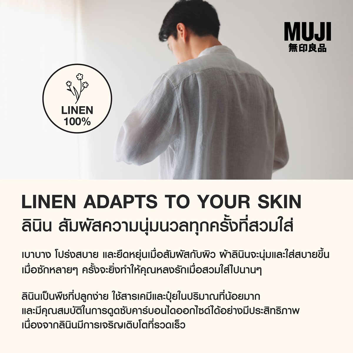 Linen Series ลินิน สัมผัสความนุ่มนวลทุกครั้งที่สวมใส่ พร้อมดีไซน์หลากหลายที่ตอบโจทย์ทุกไลฟ์สไตล์ได้ในทุกวัน ลินินจากมูจิมีคุณสมบัติเบาบาง โปร่งสบาย และยืดหยุ่นเมื่อสัมผัสกับผิว ผ้าลินินจะนุ่มและใส่สบายขึ้นเมื่อซักหลายๆ ครั้ง จะยิ่งทำให้คุณหลงรักเมื่อสวมใส่ไปนานๆ