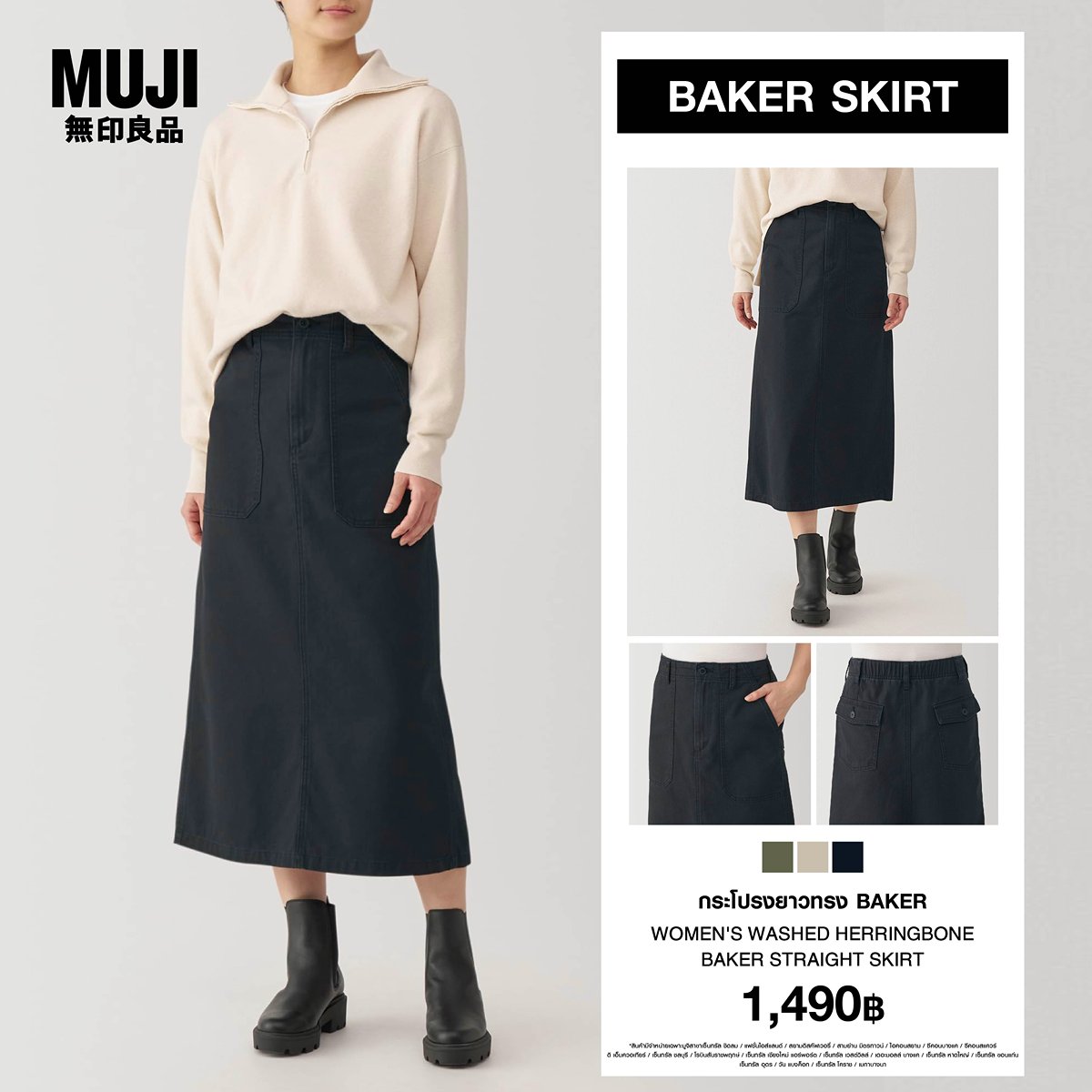 กระโปรงยาวทรง BAKER และ กระโปรงชิโนผ้ายืดทรง A-LINE วางจำหน่ายบางสาขา กรุณาตรวจสอบสาขาที่วางจำหน่ายใต้ภาพ