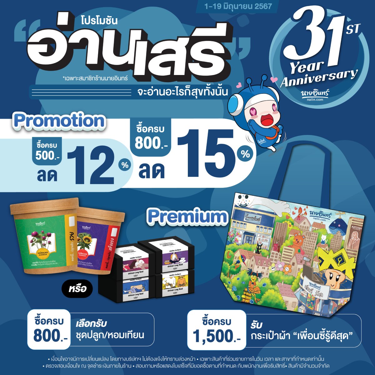 #เป๋าโชว์ลด #อ่านเสรี #จะอ่านอะไรก็คือความสุขทั้งนั้น #31ปีร้านนายอินทร์ #ร้านนายอินทร์#นายอินทร์ #naiin #ร้านหนังสือ #naiinfamily #campaingnaiin