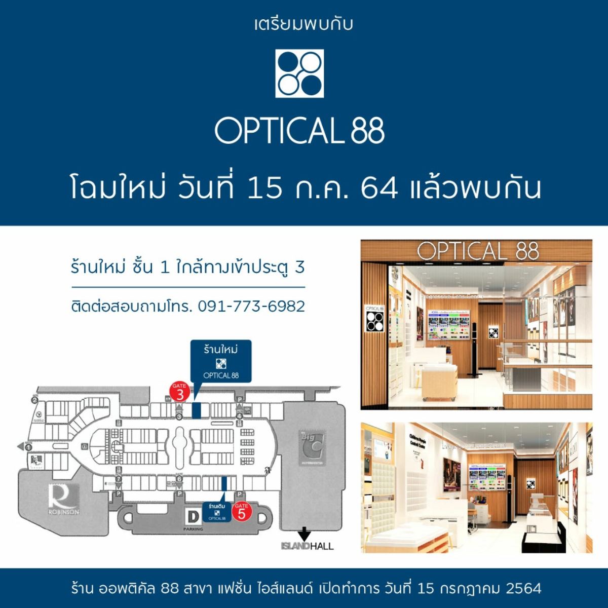 ย้ำ! ร้าน OPTICAL88 โฉมใหม่! สาขาแฟชั่นไอส์แลนด์ อยู่ชั้น 1 ทางเข้าประตู 3