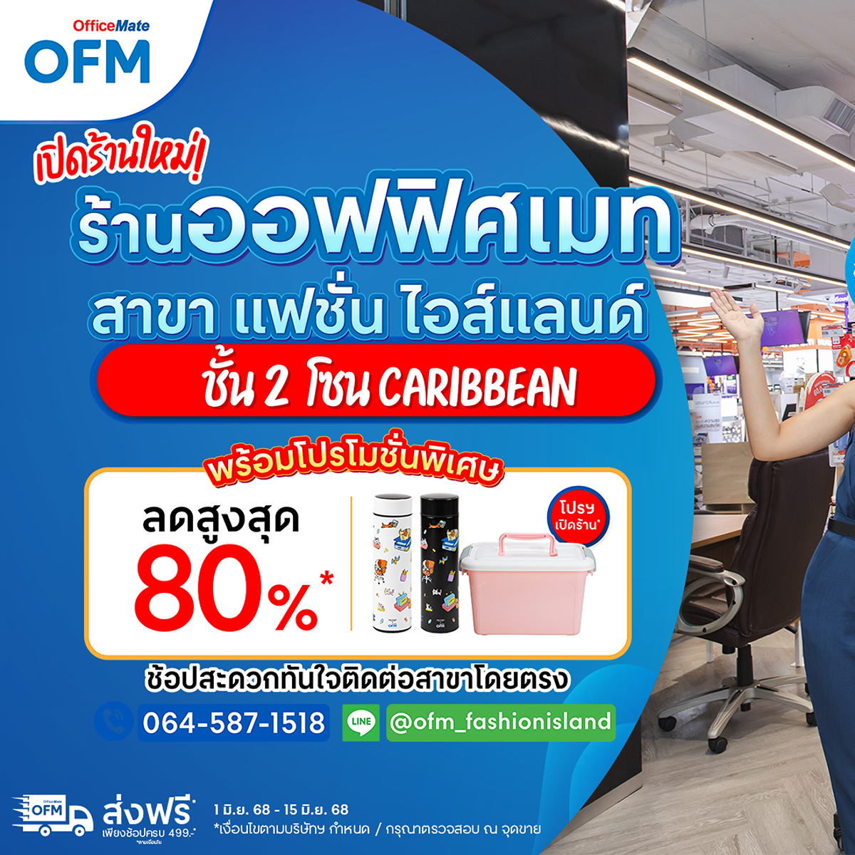 09 มิ.ย. 2568ร้านออฟฟิศเมท สาขา แฟชั่น ไอส์แลนด์ โฉมใหม่เปิดแล้ว สังเกตุง่ายเดินทางสะดวก ชั้น 2 โซน Caribbean ปักหมุด