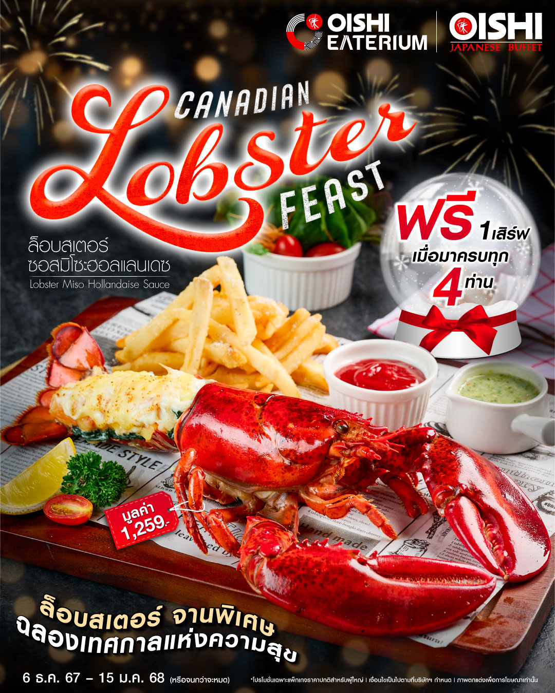 รับฟรี! #เมนูจานพิเศษ “ล็อบสเตอร์ ซอสมิโซะฮอลแลนเดซ” (มูลค่า 1,259.-)