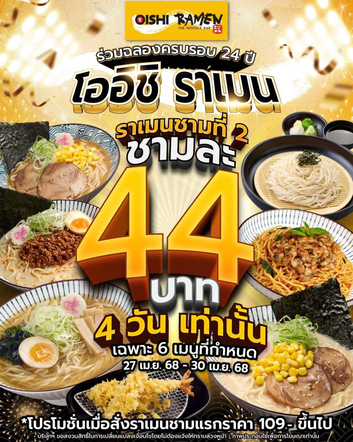 โออิชิ ราเมน ร่วมฉลองครบรอบ 24 ปี ราเมนชามที่ 2 ชามละ 44 บาท