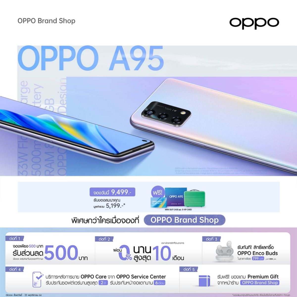 #OPPOA95 สมาร์ทโฟนรุ่นใหม่ล่าสุด มาพร้อม OPPO Glow Design สวย โดดเด่น และสเปกจัดเต็ม ในราคา 9,499 บาท หรือเลือกผ่อนเบาๆ 0% นานสูงสุด 10 เดือน
