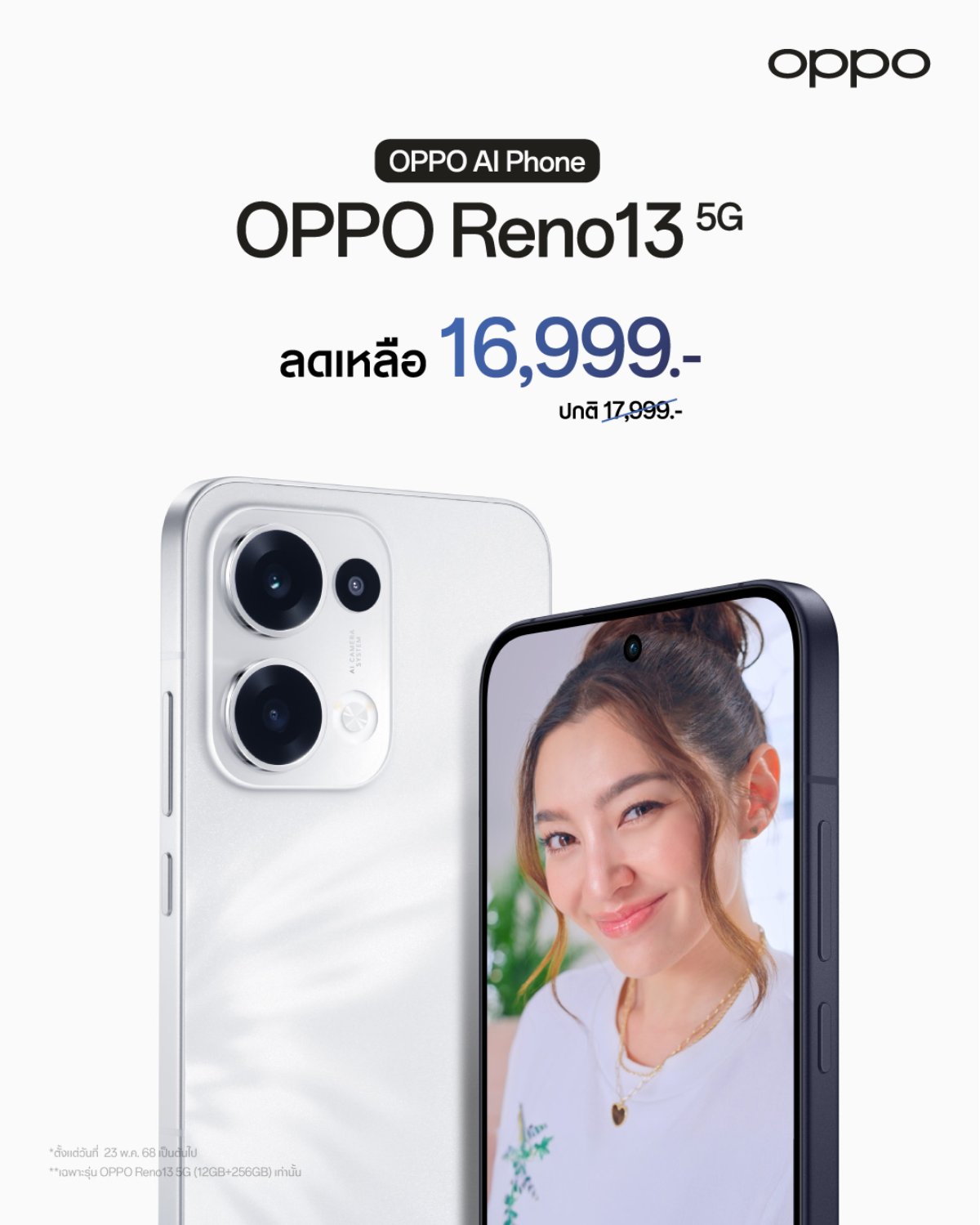 ปรับราคาใหม่ OPPO Reno13 5G สมาร์ตโฟนดีไซน์ “ปีกผีเสื้อ” สุด Trendy เก็บทุกโมเมนต์ในช็อตเดียวกับ