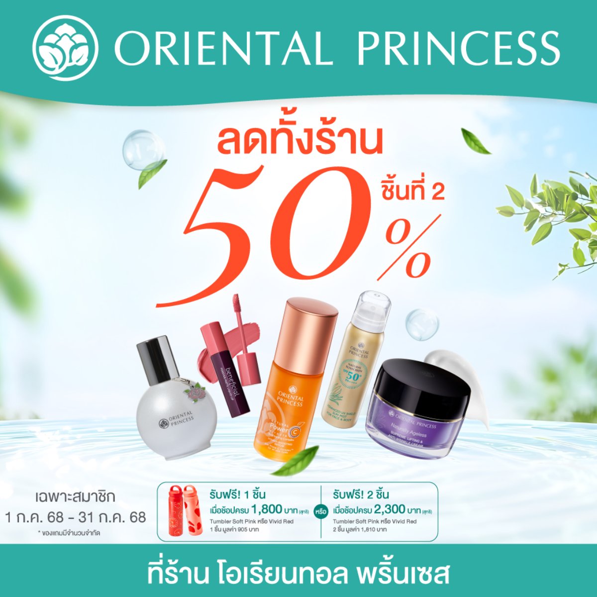 ช้อปให้คุ้ม ชิ้นที่ 2 ลด 50% ทั้งร้าน เฉพาะสมาชิก อัพความปังให้เต็มตะกร้า รีบเลย ที่ Oriental Princess