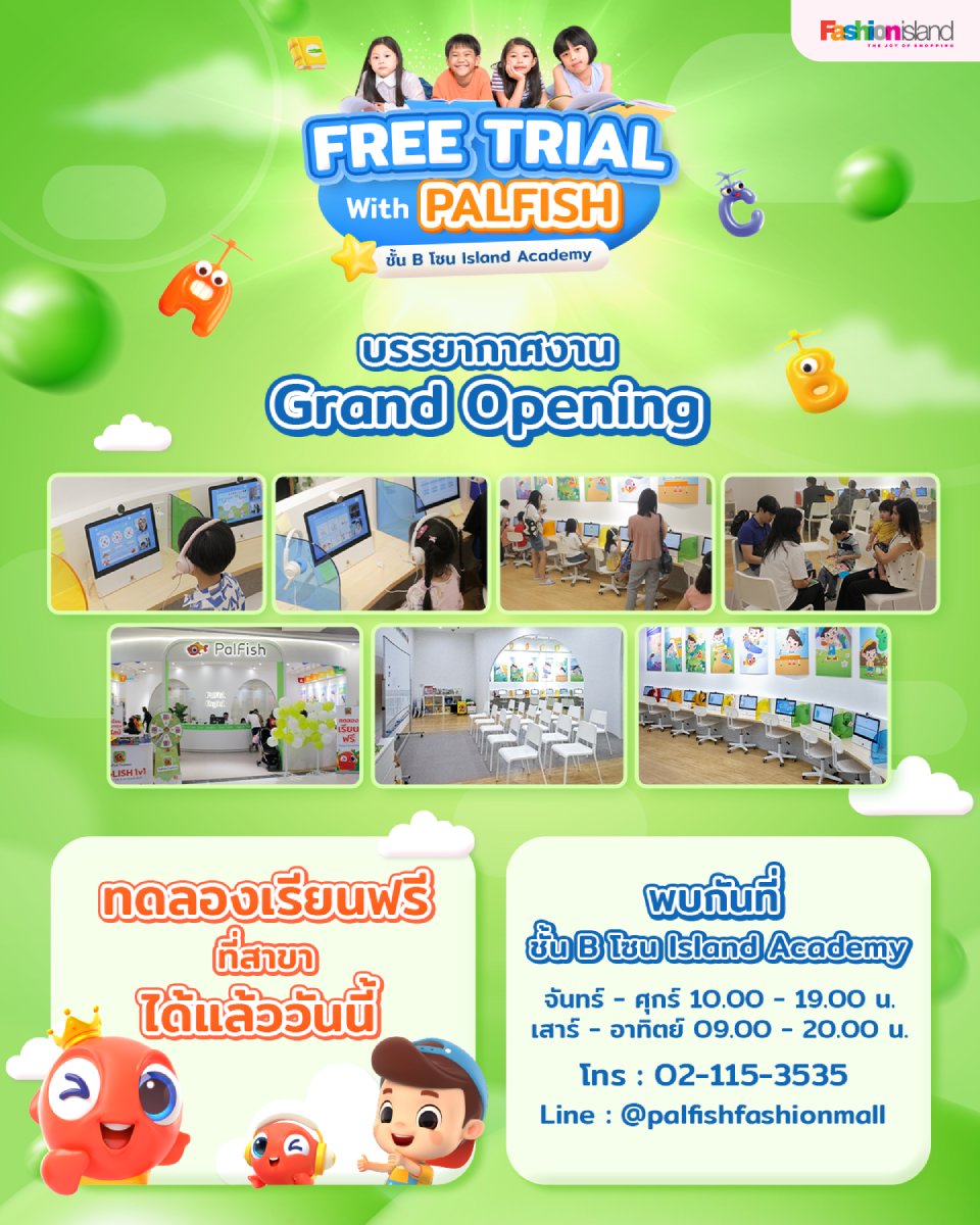บริษัท PalFish Thailand จัดกิจกรรม Grand Opening PalFish Flagship store แห่งแรกในประเทศไทย ณ ศูนย์การค้า Fashion Island ชั้น 3 โซน Island Academy ซึ่งเป็นศูนย์การเรียนรู้ภาษาอังกฤษ สำหรับน้องๆ อายุตั้งแต่ 3-15 ปี ด้วยการใช้นวัตกรรมแอปพลิเคชันเรียนภาษาอังกฤษ ที่จะทำให้น้องๆ ได้เรียนกับครูต่างชาติแบบส่วนตัวแบบ 1 ต่อ 1