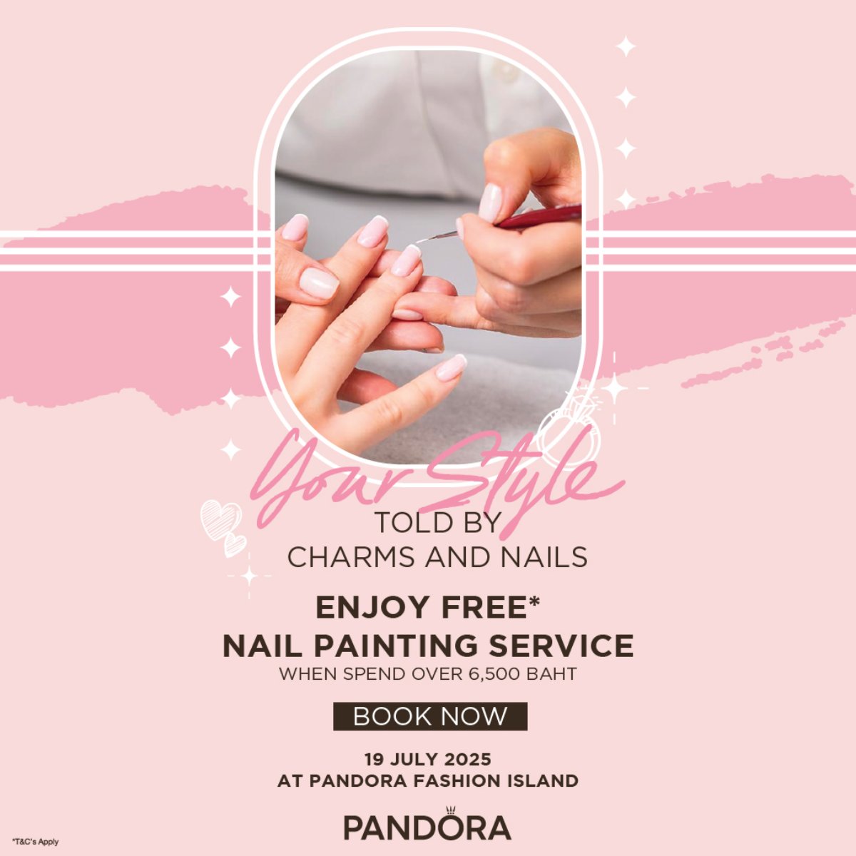 Your Style, Told by Charms and Nails เติมเต็มลุคให้โดดเด่นยิ่งขึ้นด้วยเครื่องประดับจาก Pandora พร้อมเพลิดเพลินกับบริการเพ้นท์เล็บสุดคิวท์ 30 นาที ให้คุณได้คอมพลีตลุครับซีซั่นใหม่อย่างมีสไตล์