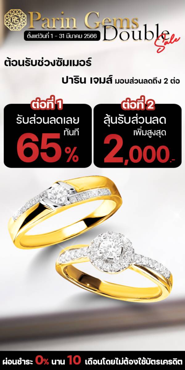 11 มี.ค. 2566“Parin Gems DOUBLE SALE” ดีลเด็ดต้อนรับซัมเมอร์ ร้านเพชรปาริน เจมส์มอบส่วนลดให้ลูกค้าคนพิเศษถึง 2 ต่อ