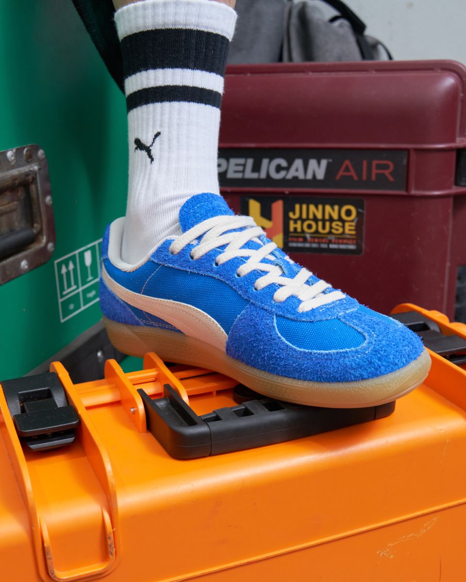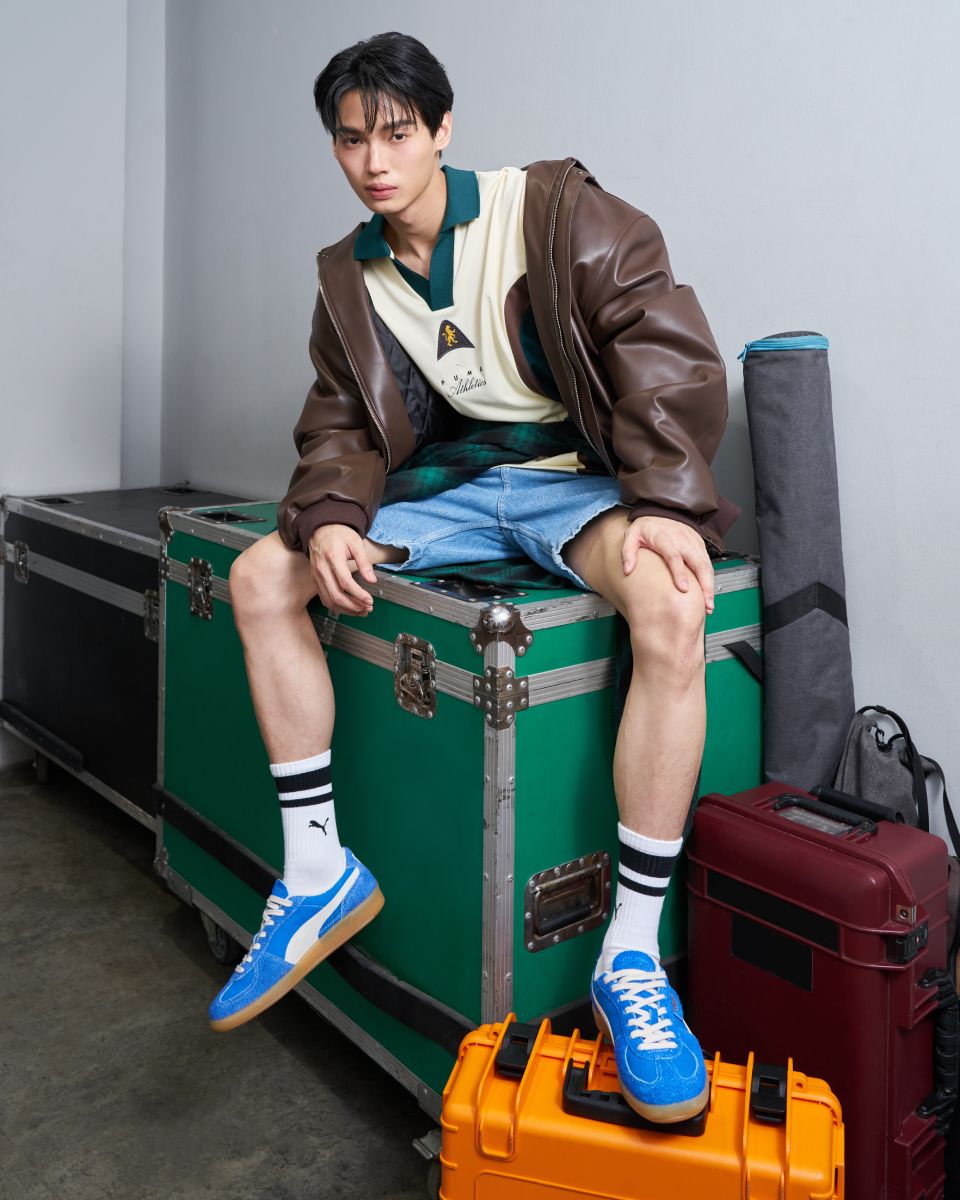 วิน เมธวิน สวมใส่รองเท้า PUMA รุ่น Palermo Vintage สีน้ำเงิน Blue Frosted จัดเต็มด้วยสไตล์สุดเท่แมตช์กับเสื้อผ้าจากคอลเลกชันใหม่ล่าสุด