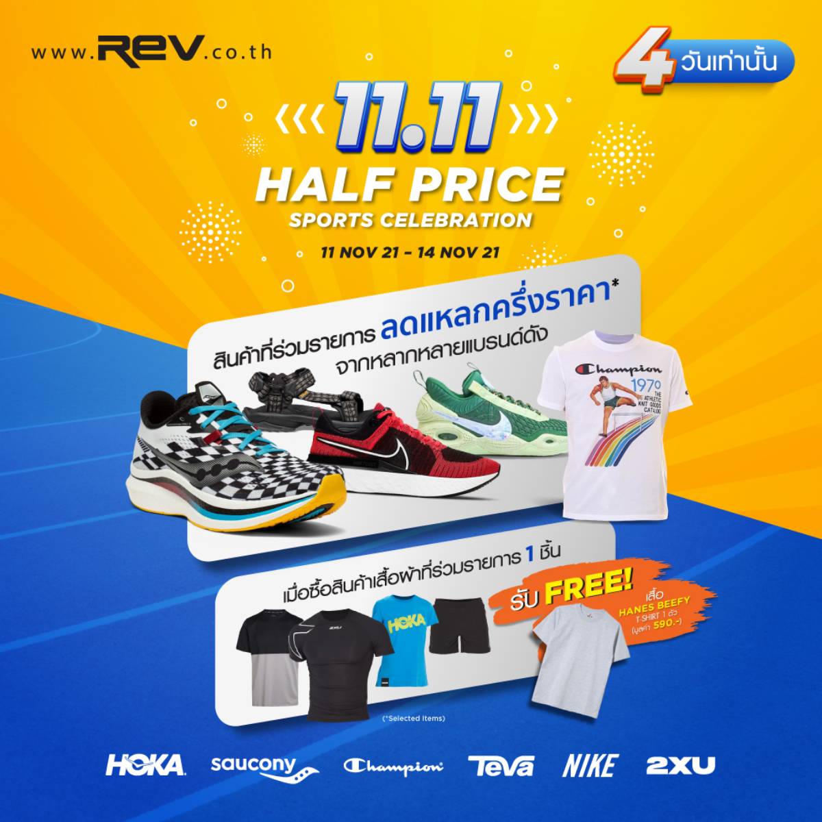 ร่วมเฉลิมฉลองไปกับ REV RUNNR ที่ยกสินค้าแบรนด์ดังมาลดแหลกครึ่งราคา*