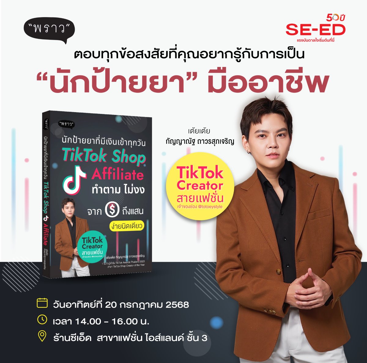 สายแฟชั่น เจ้าของผลงานหนังสือ “นักป้ายยาที่มีเงินเข้าทุกวัน TikTok Shop Affiliate”