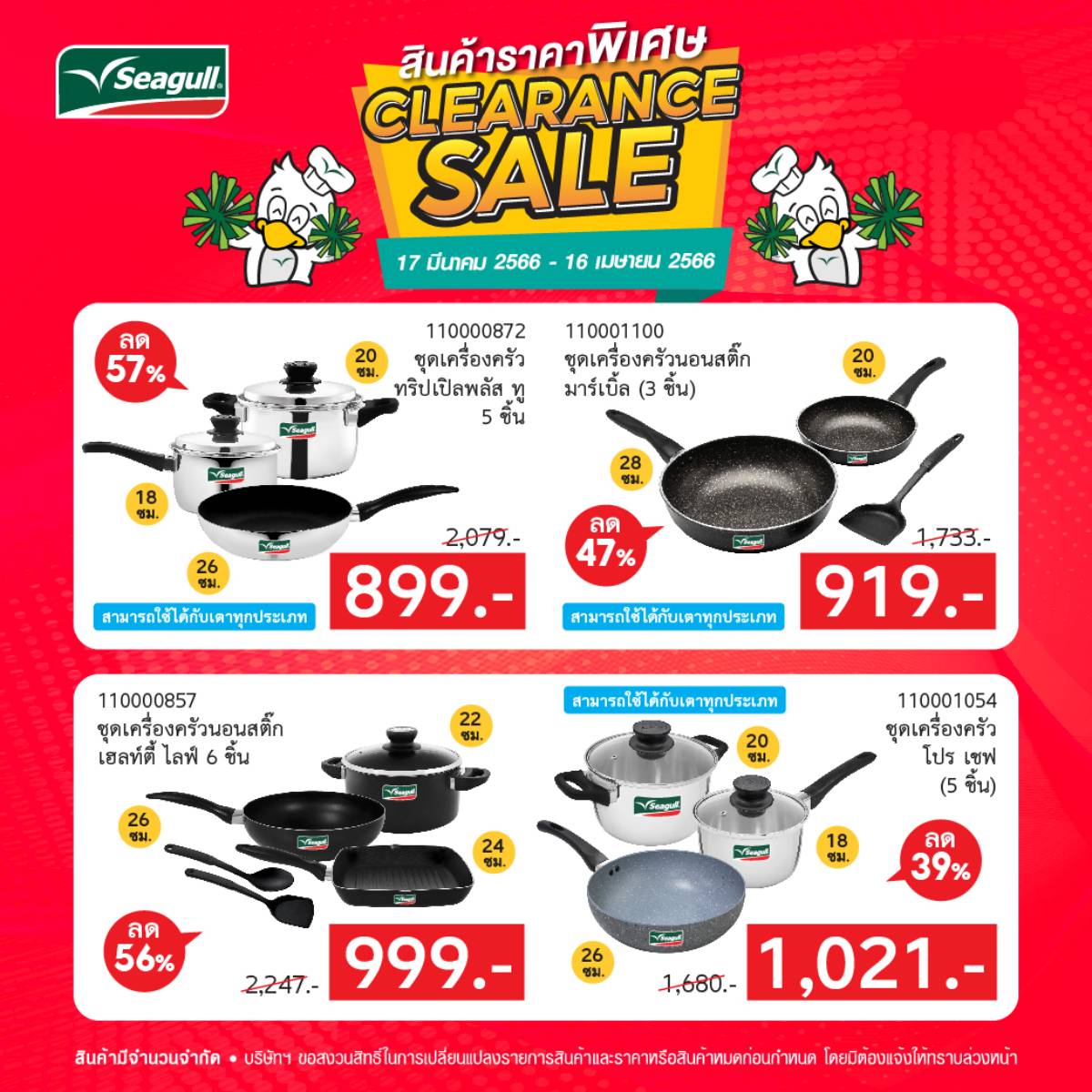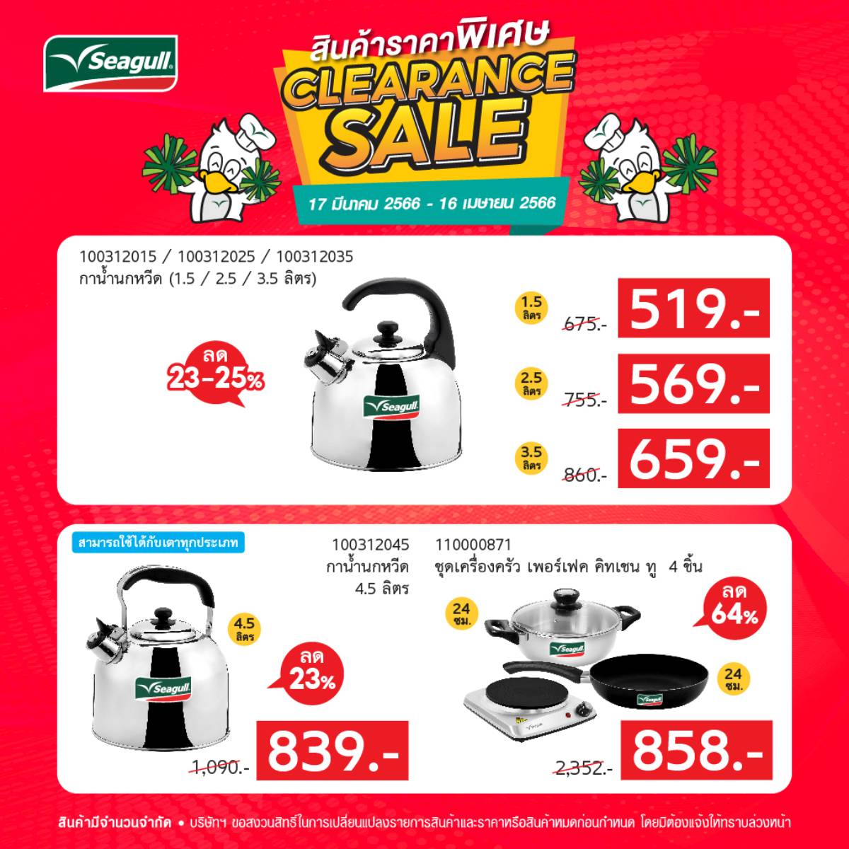 26 มี.ค. 2566Seagull Store มีการจัดโปรโมชั่น Clearance Sale ลดสูงสุด 64 %