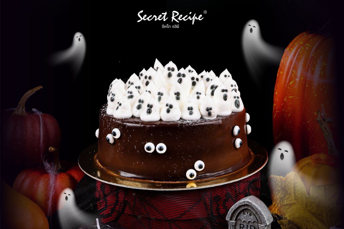 พิเศษสุด มีเฉพาะพรีออเดอร์ Chocolate Indulgence Cake สุดคลาสสิกจาก Secret Recipe ในธีม “Ghost Party” ขนพาเหรดกองทัพ Ghosh ตัวจิ๋ว น่ารักจนต้องร้องกรี๊ด Halloween ปีนี้ ถ้าไม่ได้ลอง #HalloweenScreamCollection